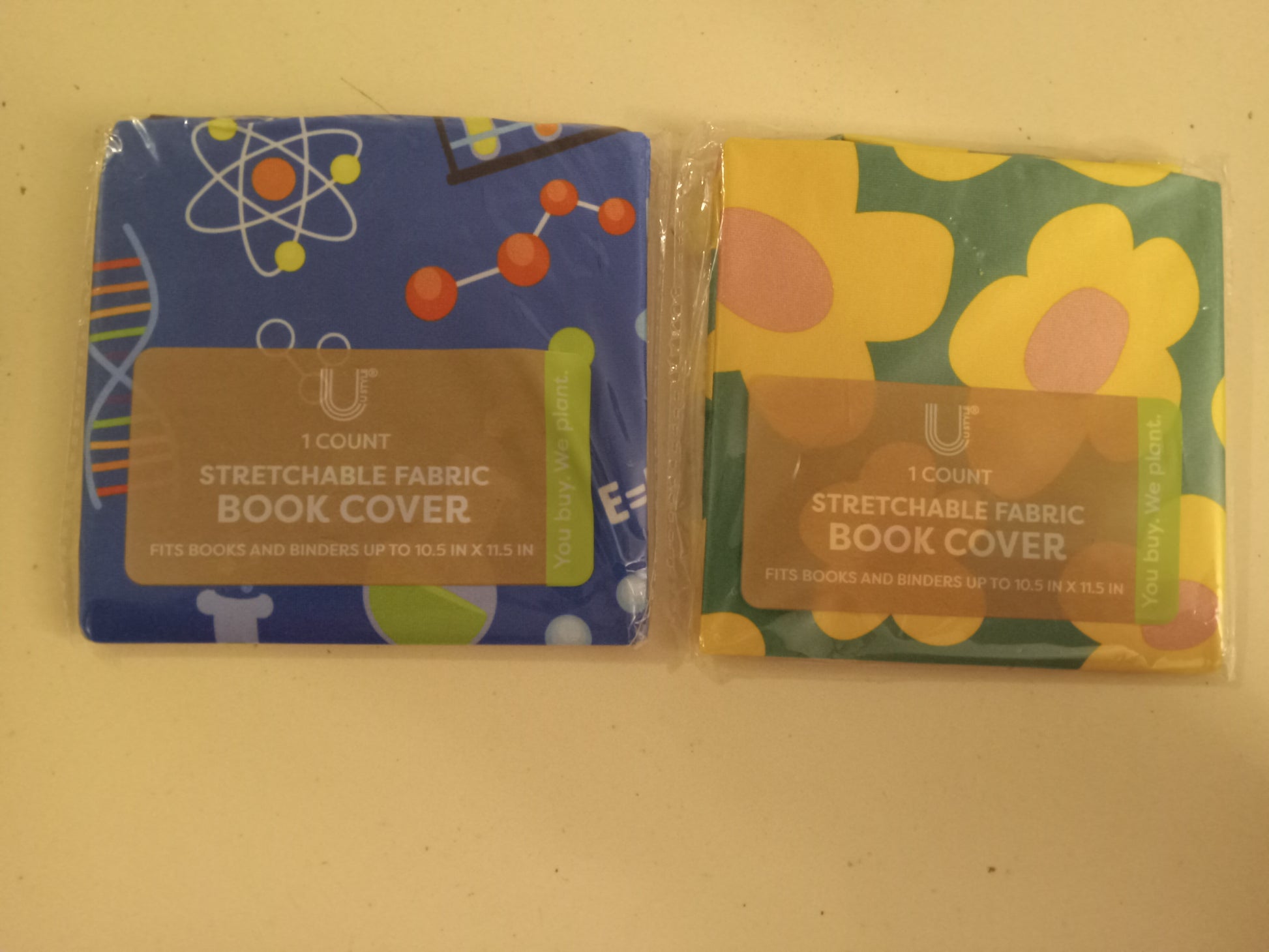 Stretchable Fabric Book Cover, Binder Protector, Blue Science or Green Flowers, Stretch Up To 10.5"X11.5", NEW.