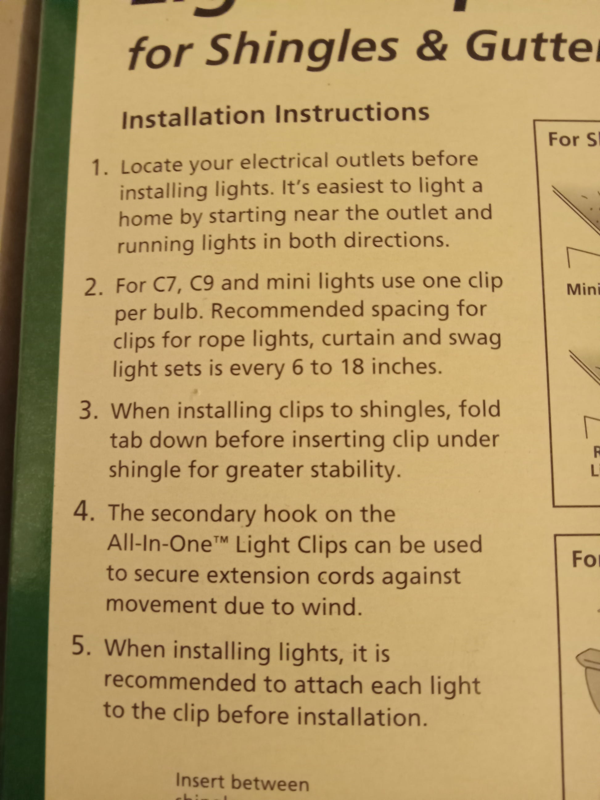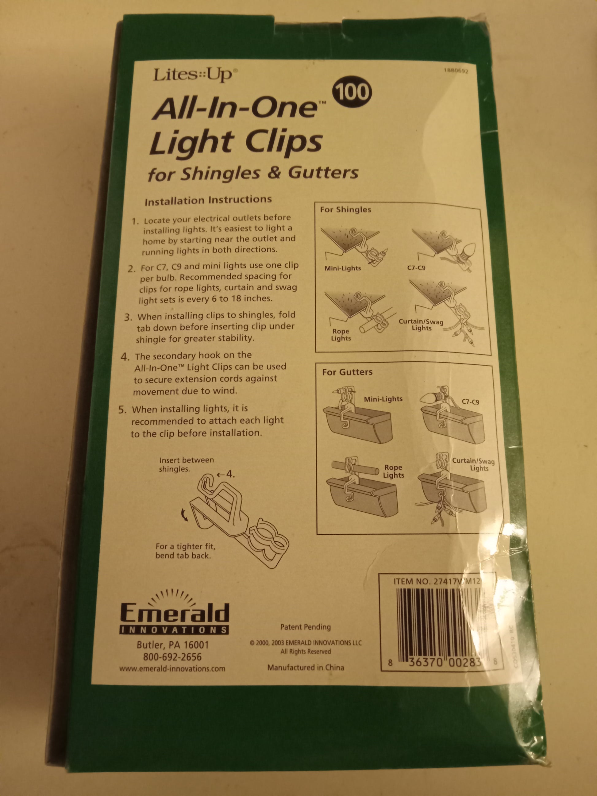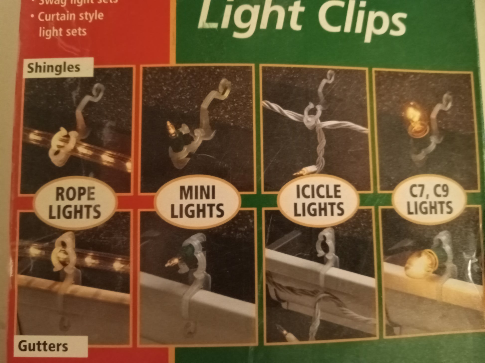 Clips for hanging Christmas lights of many kinds: Rope/Mini/Icicle/C7/C9 style lights.