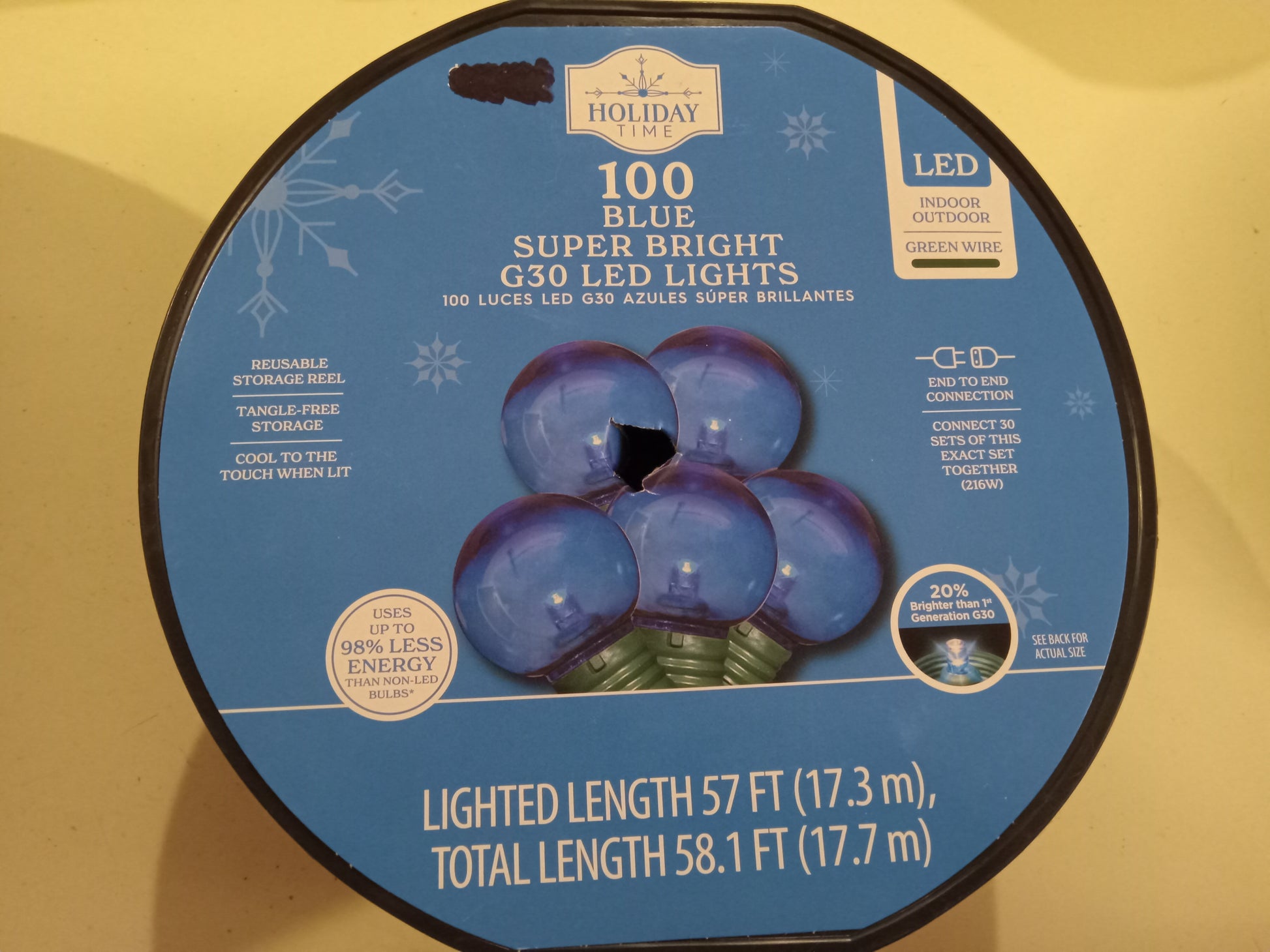 Christmas Lights Roll, 100 LED G30 Bulbs, Blue or Cool White or Warm White Super Bright, Green Wire Roll, Holiday Time, NEW