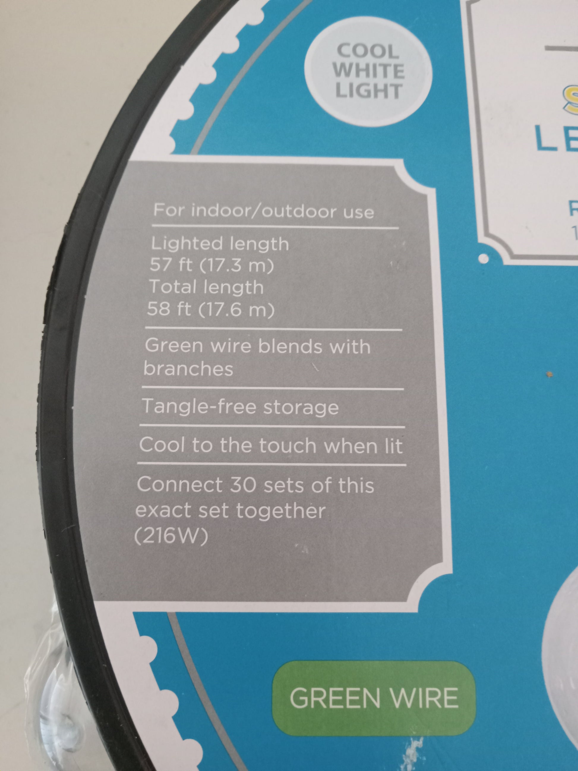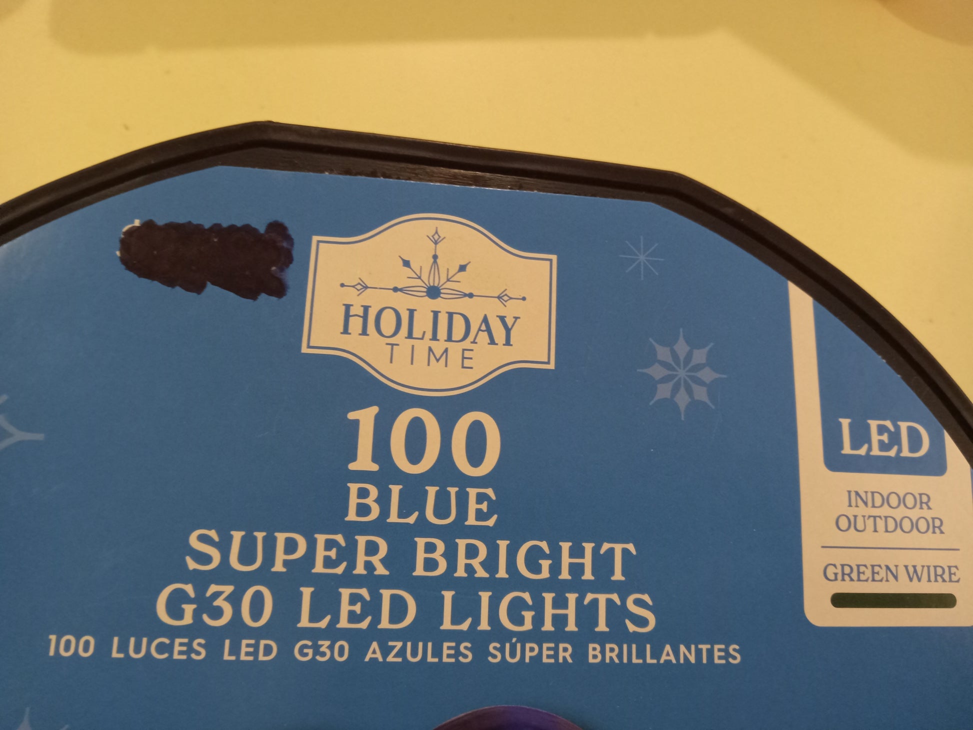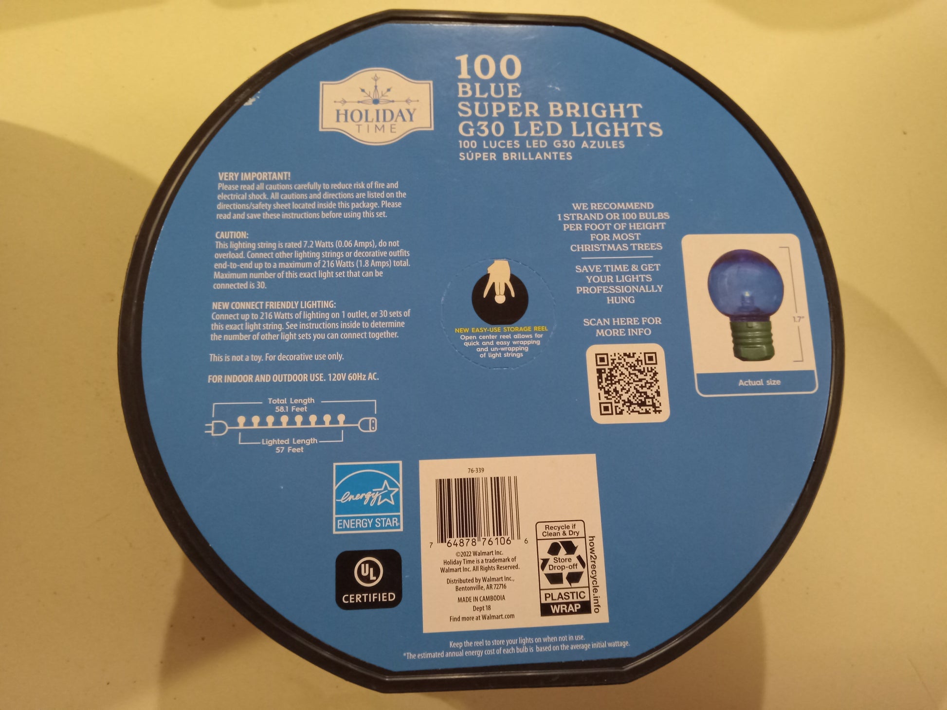 Christmas Lights Roll, 100 LED G30 Bulbs, Blue/Cool White/Warm White Super Bright, Green Wire Roll, Holiday Time, NEW