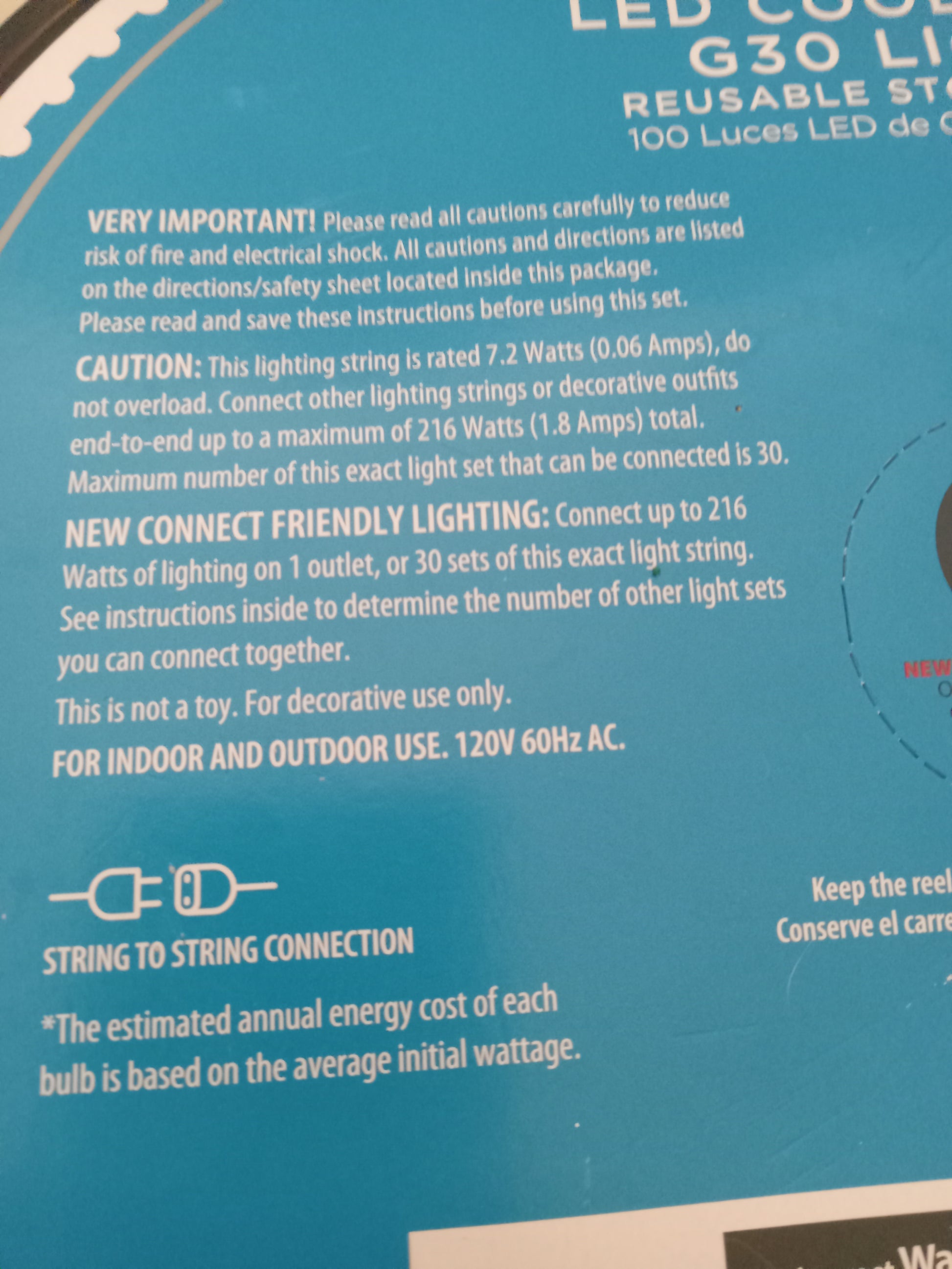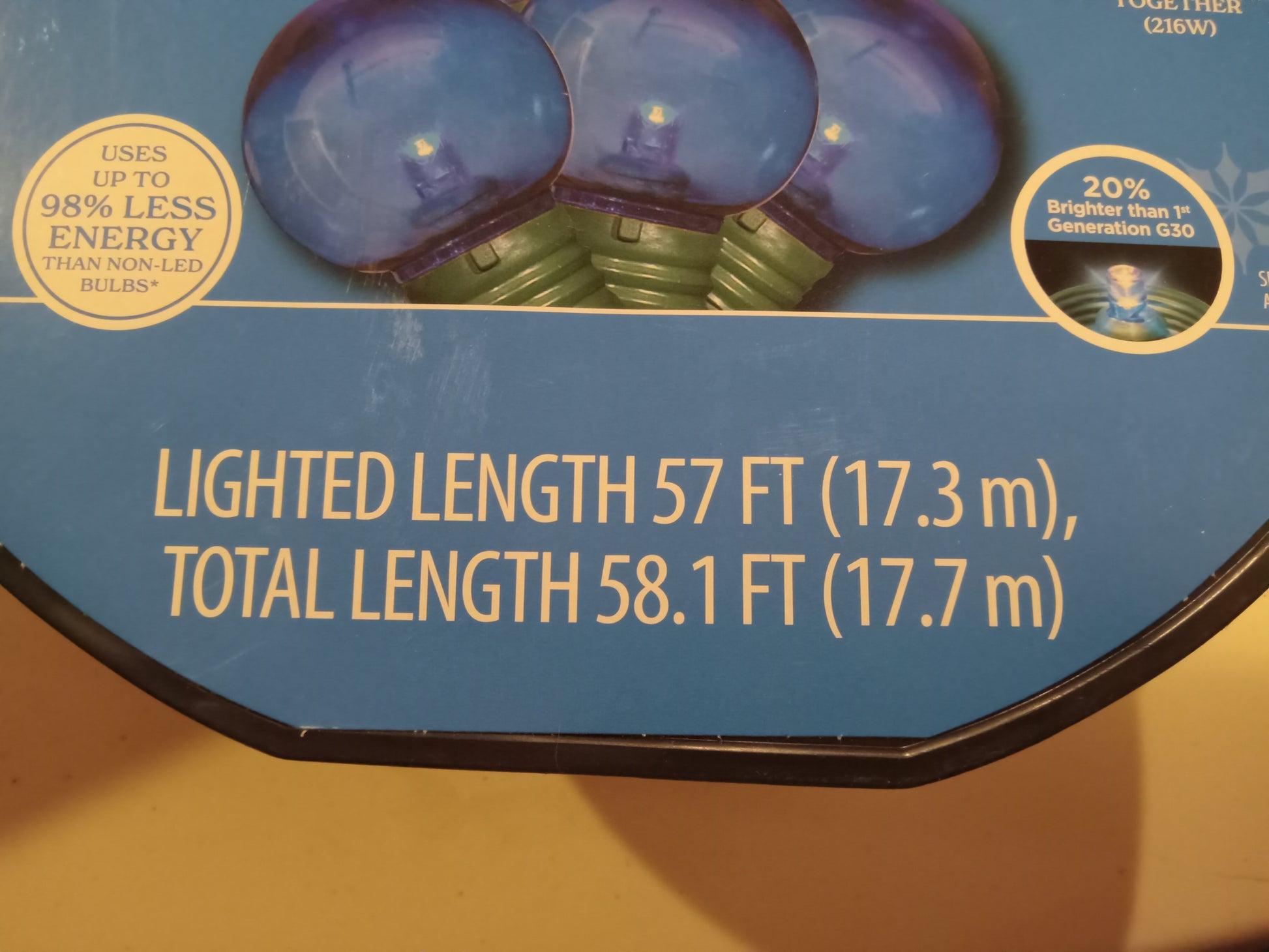 Christmas lights roll of 100 LED large G30 bulbs, super bright lights on green wire by Holiday Time, indoor or outdoor.