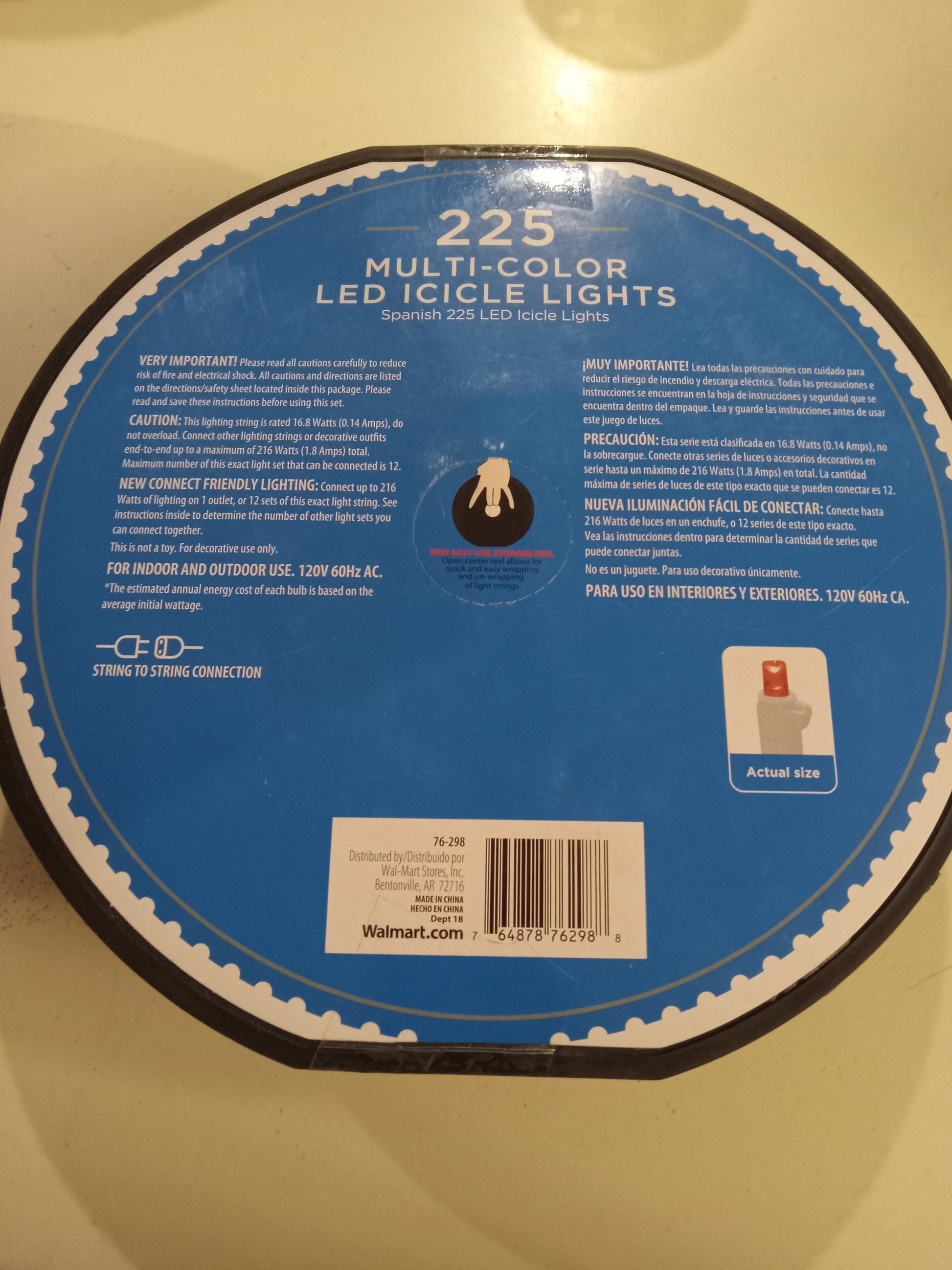 Christmas lights roll by Holiday Time of 225 LED micro icicle bulbs, multi-color on white wire, indoor and outdoor.
