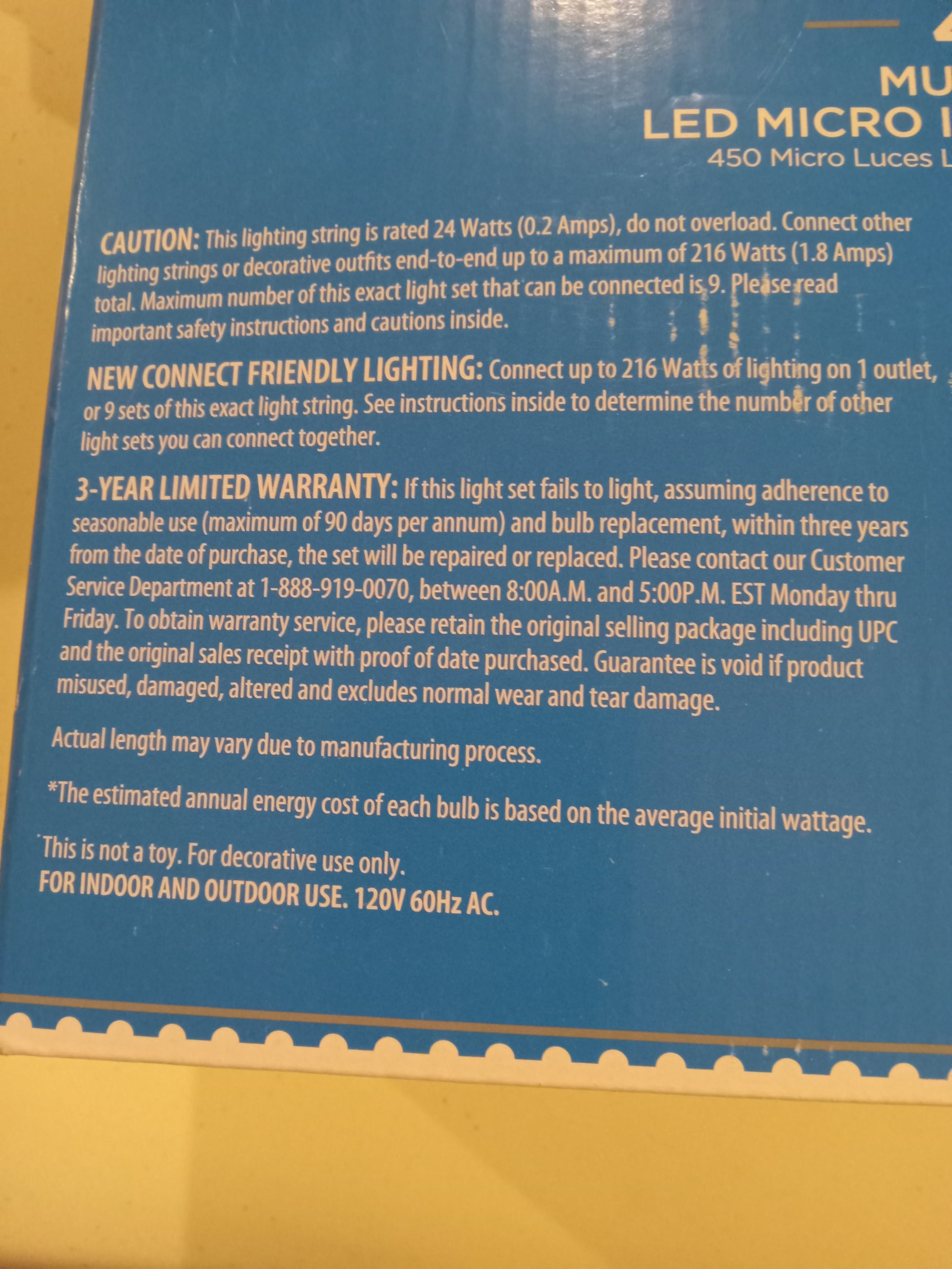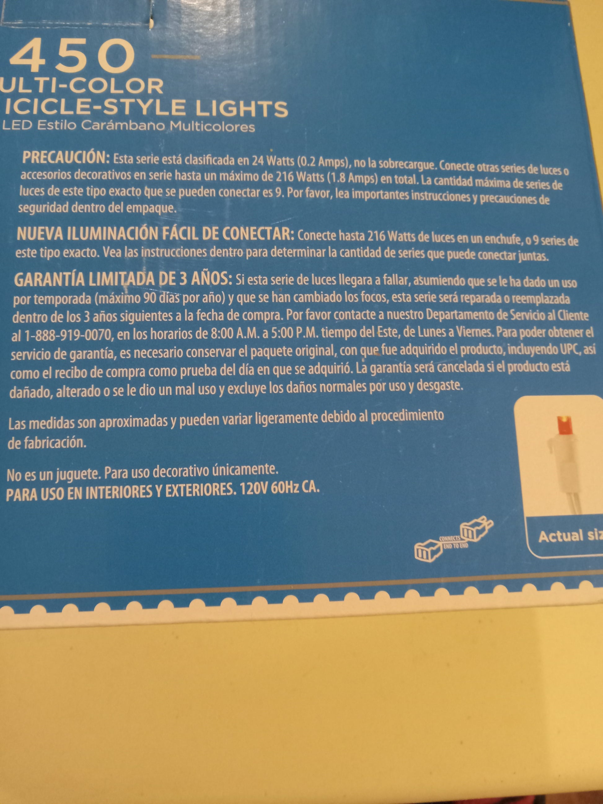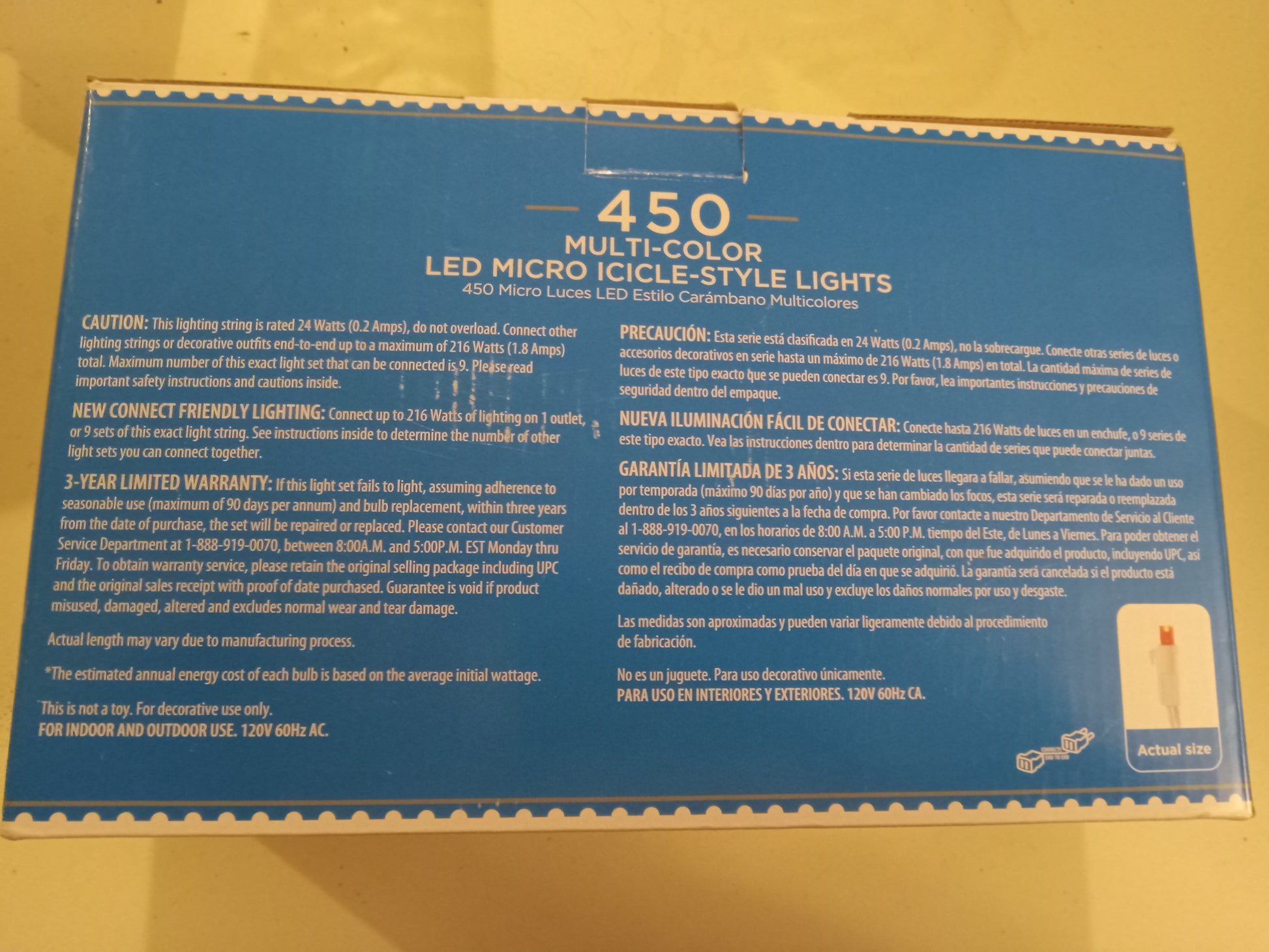450 Multi-Color: 450 Multicolored LED micro Icicle style lights, white wire, 66ft (20.12 m), connect up to 9 sets together.