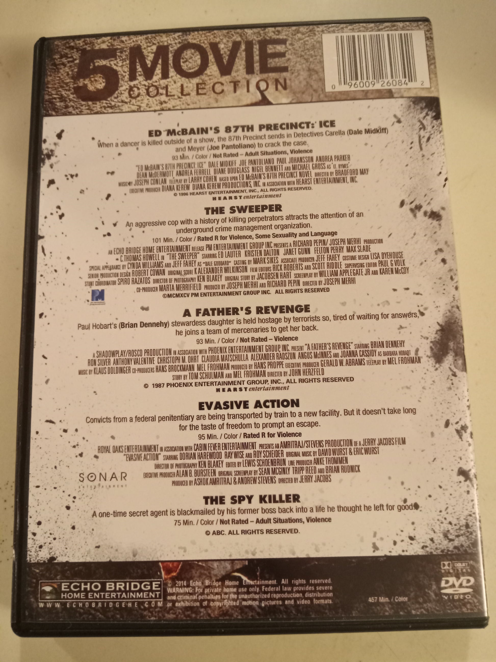 5 Movie Collection, Ed McBain's 87th Precinct Ice, Sweeper, Father's Revenge, Evasive Action, Spy Killer, DVD, Rated R/Not Rated, Widescreen, USED
