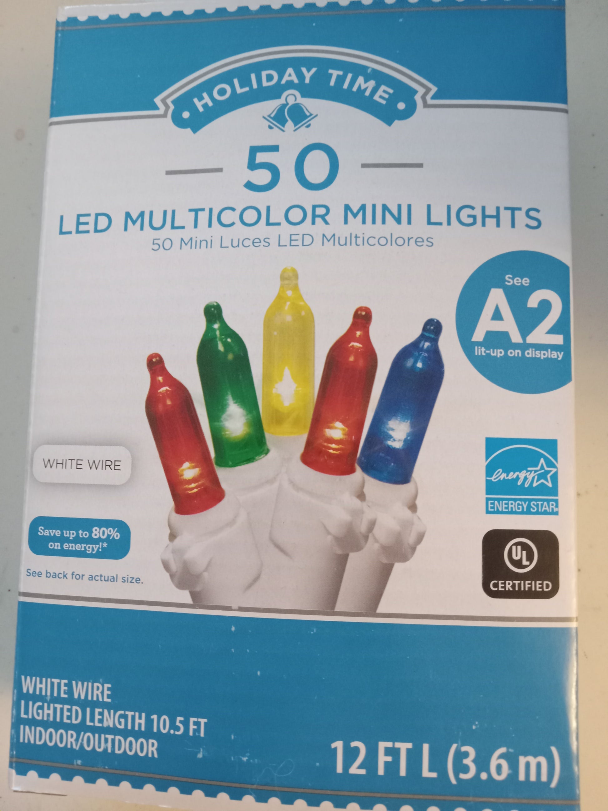 Christmas Lights by Holiday Time: 50 LED mini lights, Indoor/Outdoor, variety of colors to pick from, highly efficient low electricity.