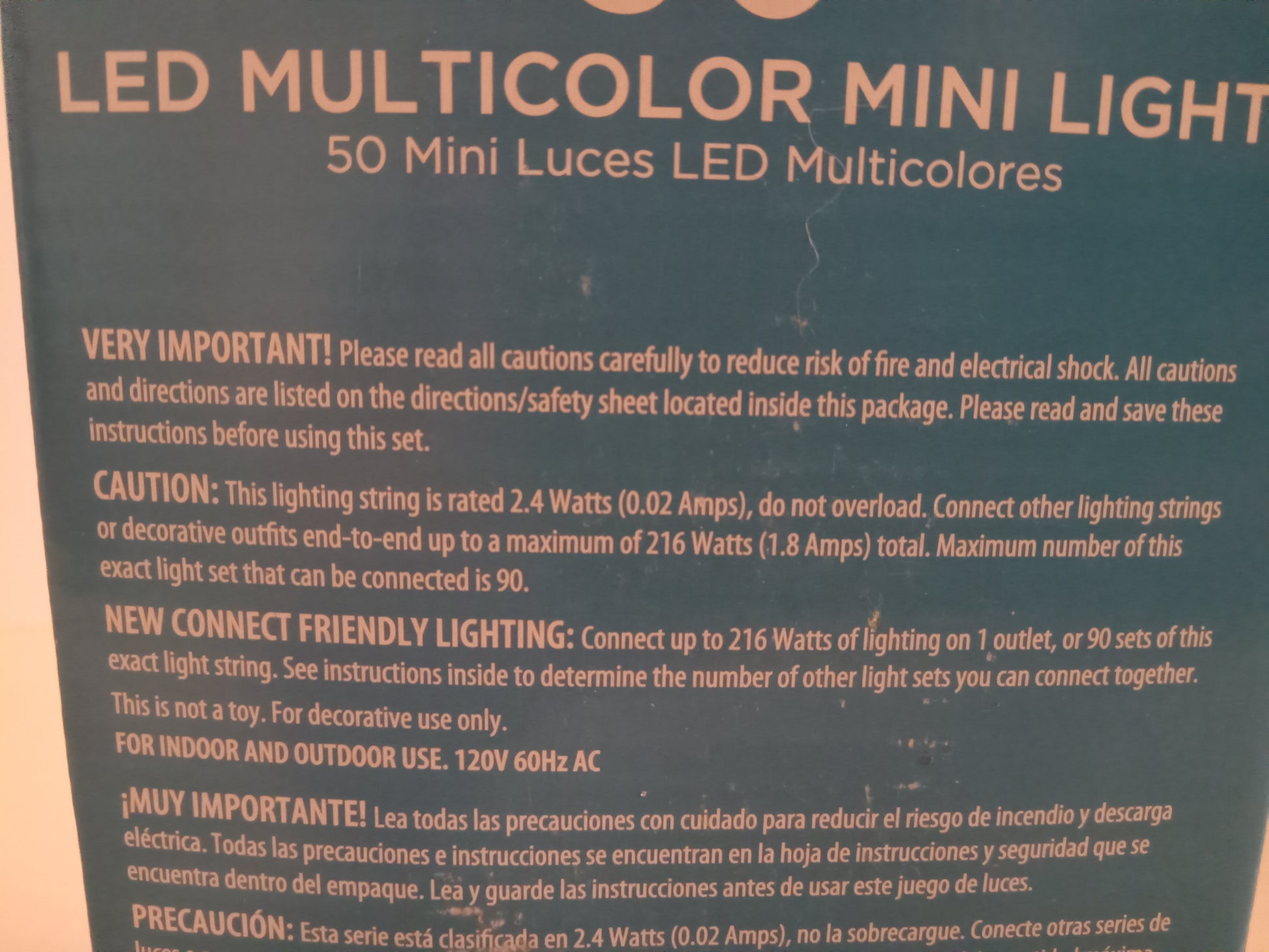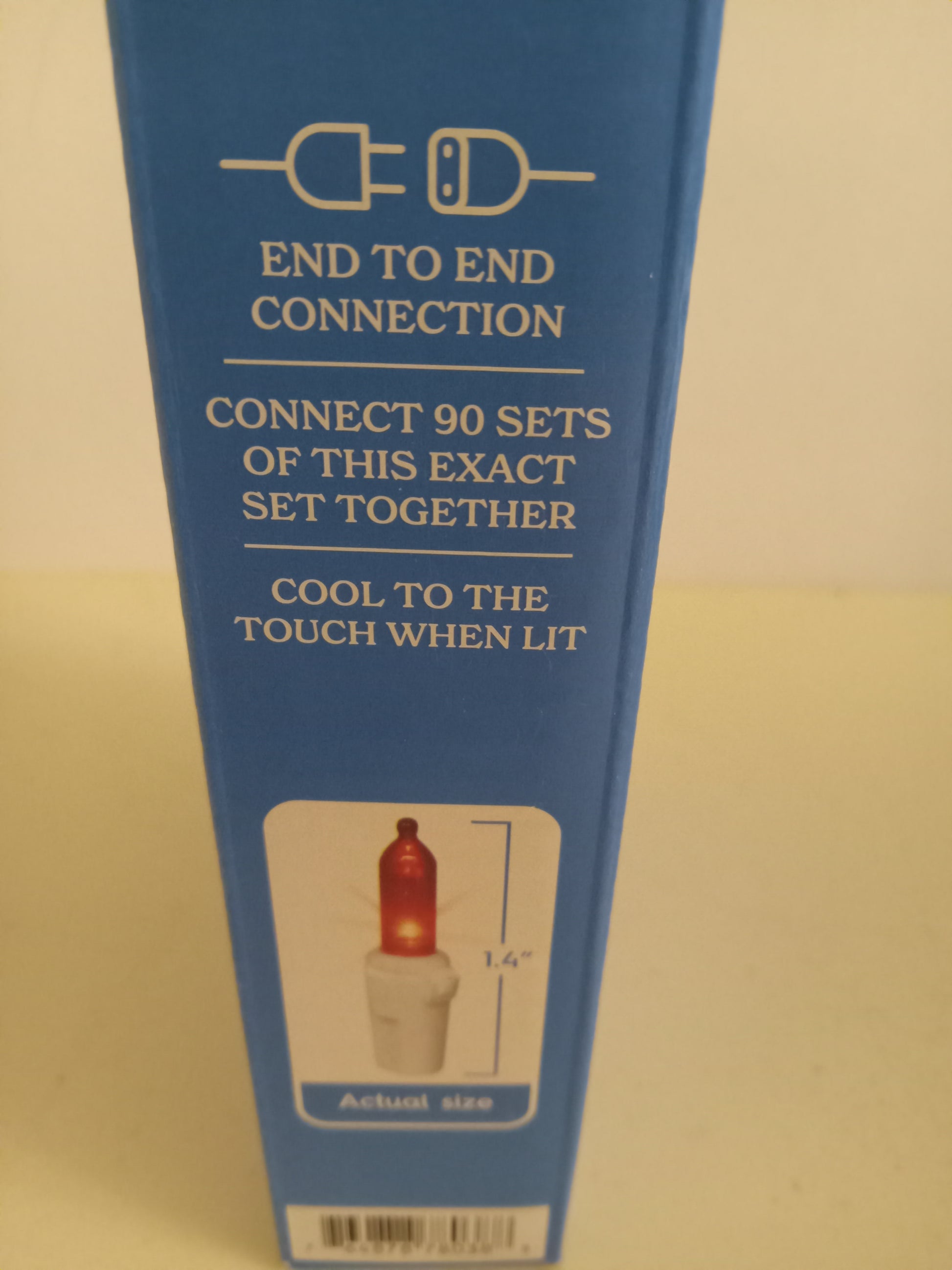 50 Multi-Color (10.5ft): 50 LED Multi-color lights on white wire, lighted length 10.5ft, connect up to 90 sets together.