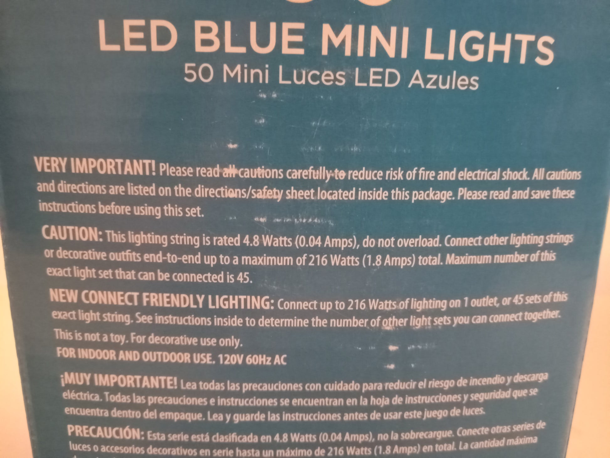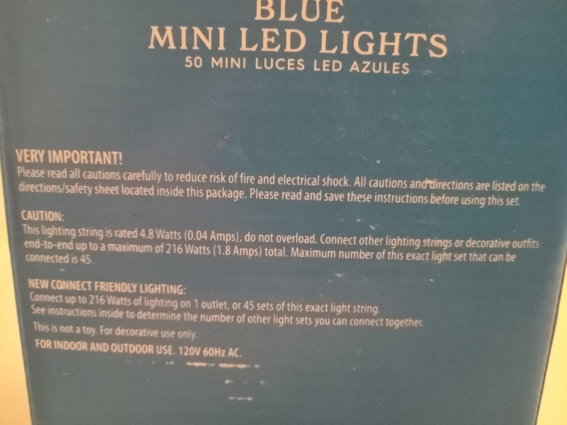 50 Blue (9.5ft): 50 LED Blue lights on white wire, lighted length 9.5ft, connect up to 45 sets together.