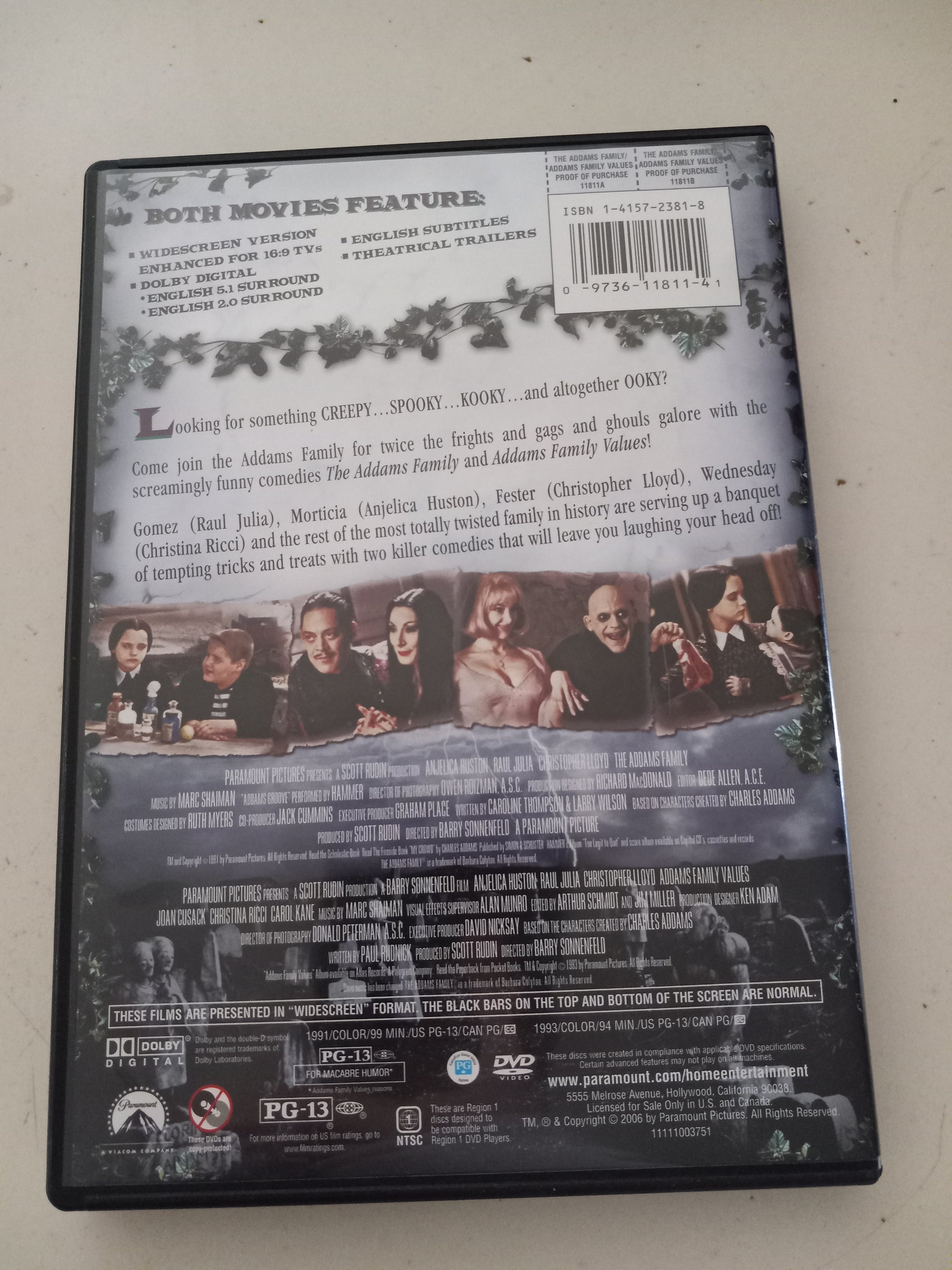 Addams Family & Addams Family Values, DVD 2 Movies, Widescreen, Rated PG-13, USED
