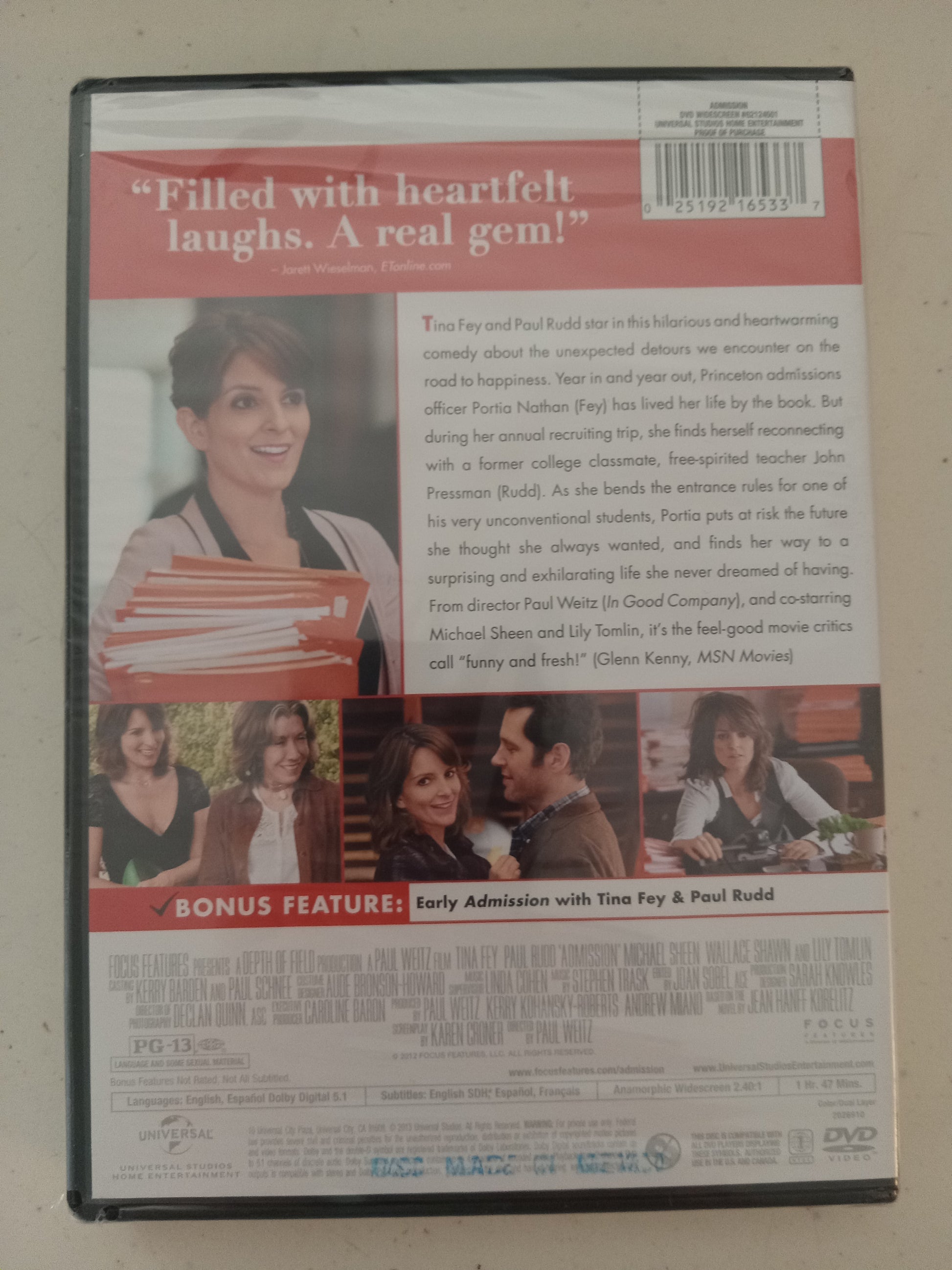 Admission, DVD Movie, Tina Fey Widescreen, Rated PG-13, NEW or USED