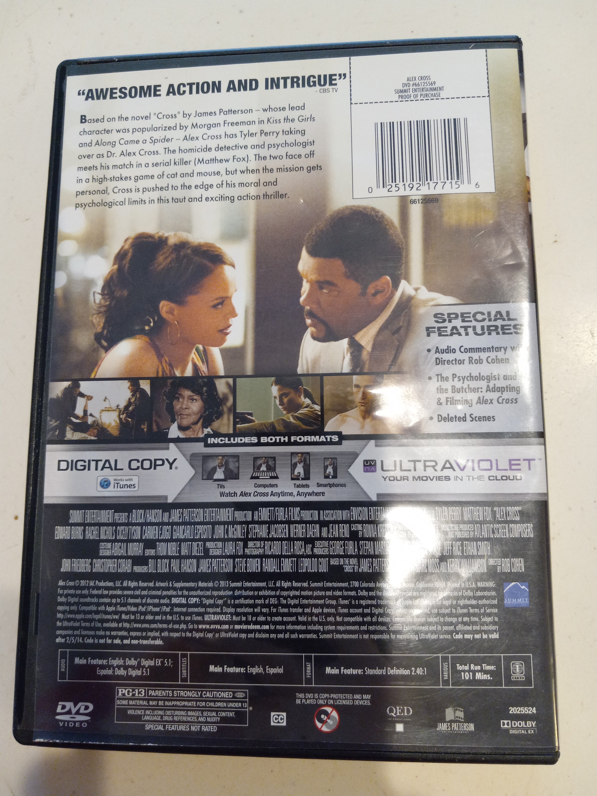 Alex Cross, DVD Movie, Tyler Perry Widescreen, Rated PG-13, USED.