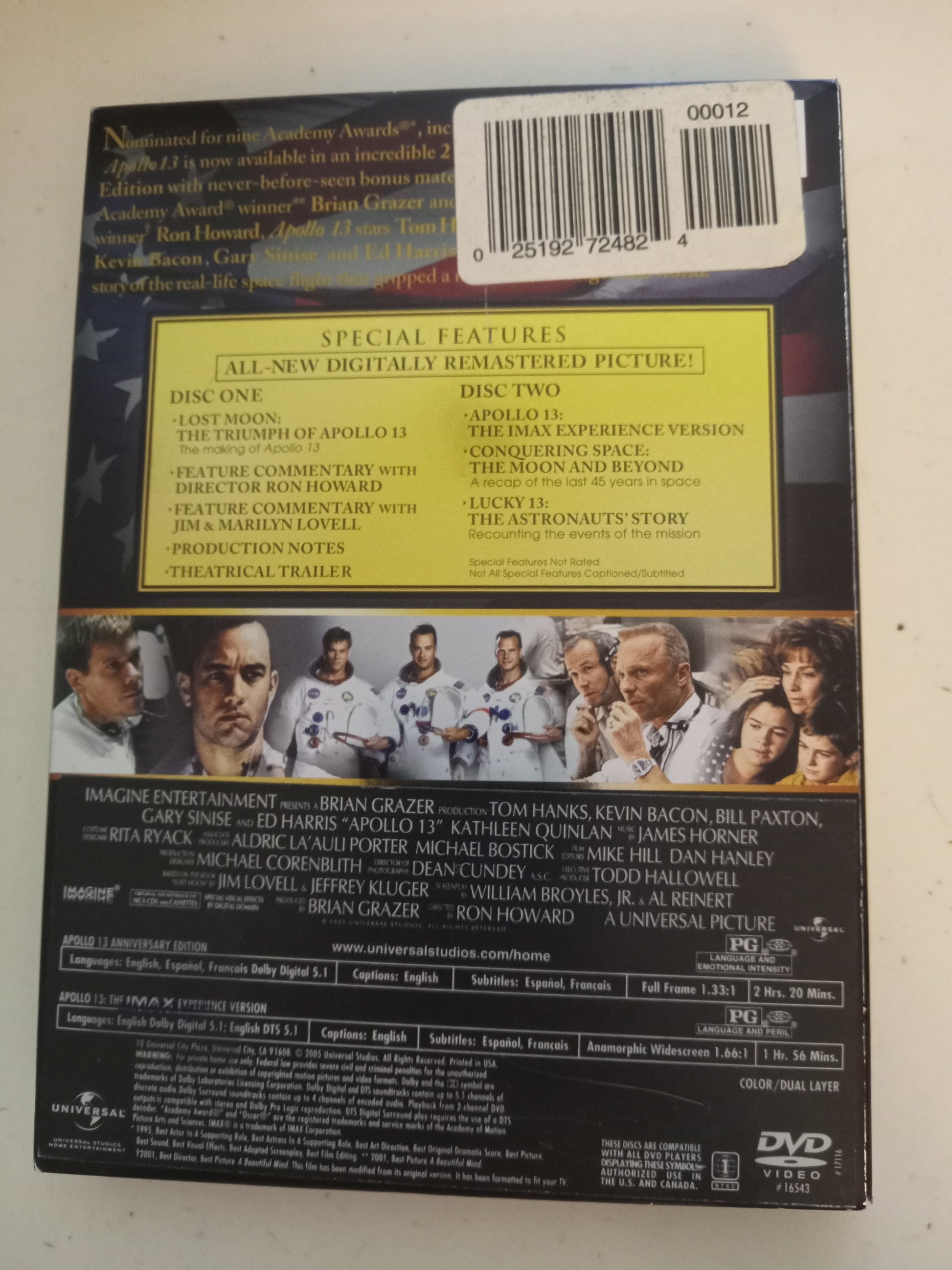 Apollo 13, Houston we have a problem. DVD Movie, Tom Hanks Fullscreen, 2 Disc Anniversary Edition, Rated PG, USED.