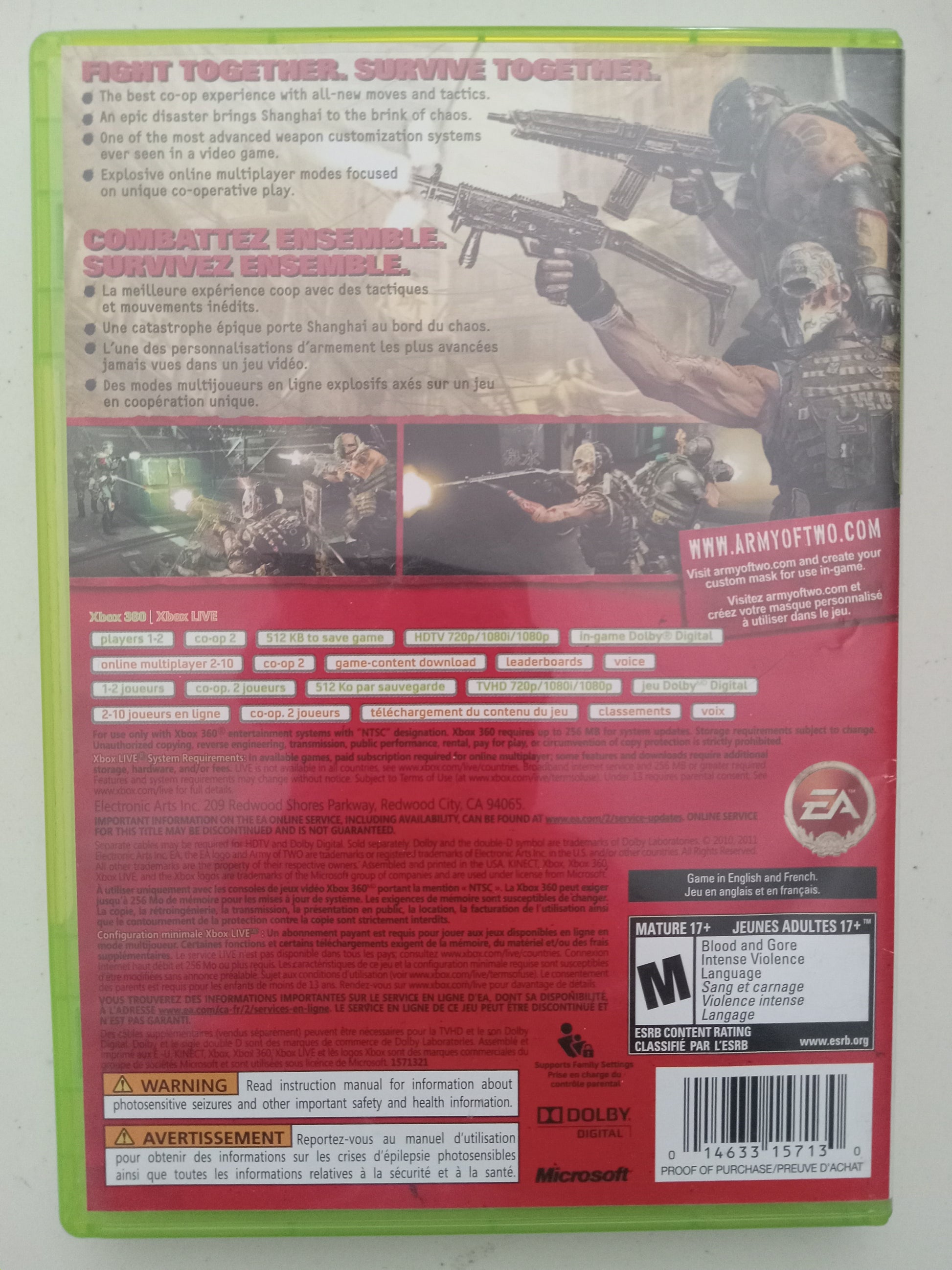 Army of Two 40th Day Xbox 360 Video Game, Rated M, USED