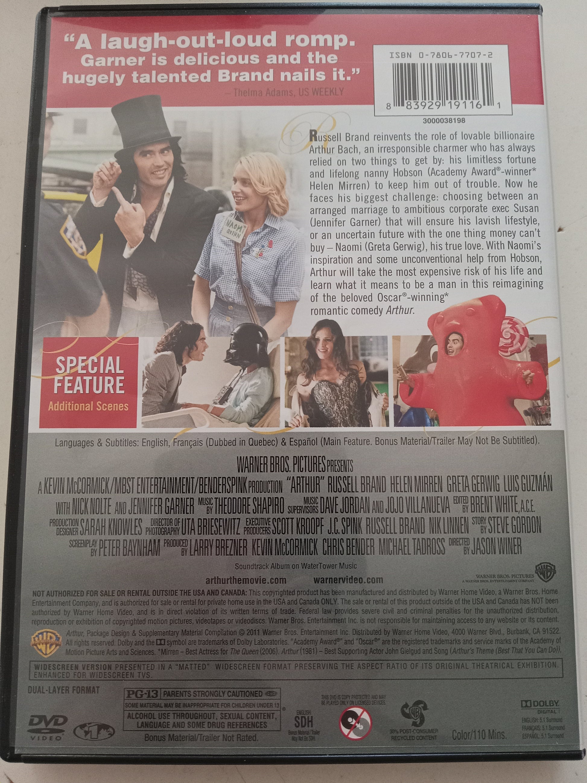 Arthur, DVD Movie, Russell Brand Widescreen, Rated PG-13, USED