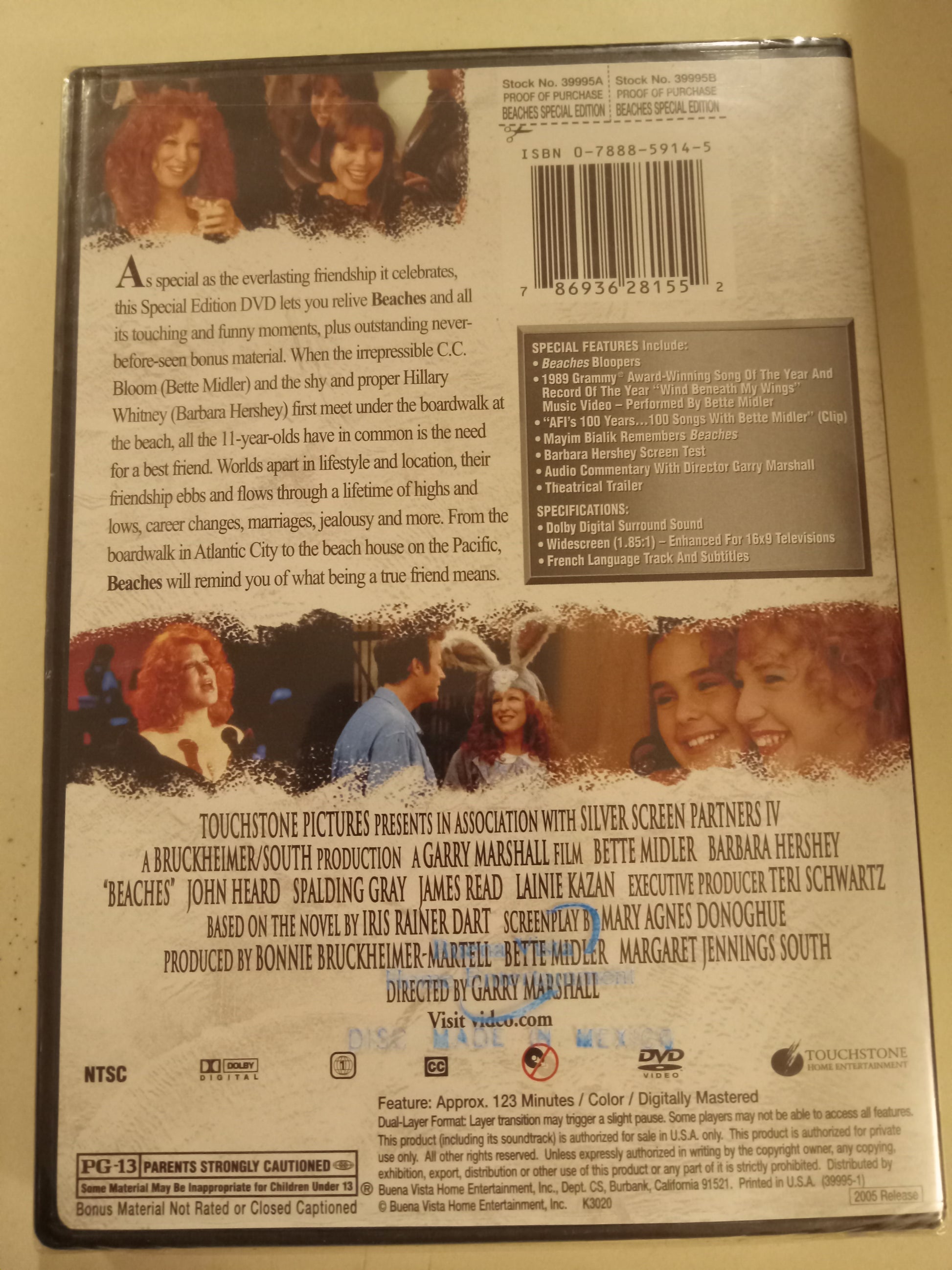 Beaches, DVD Movie, Bette Midler Widescreen, Rated PG-13, NEW