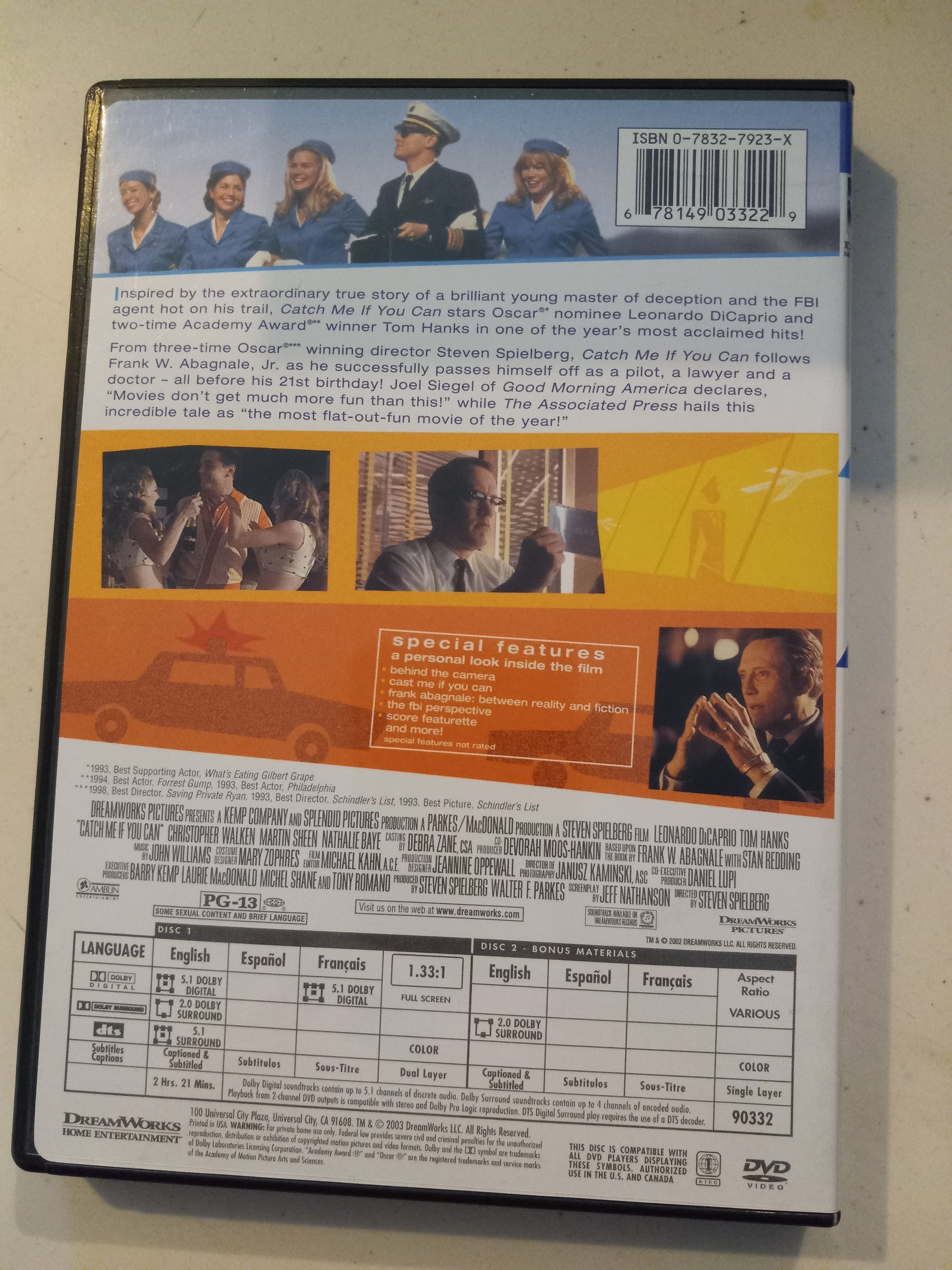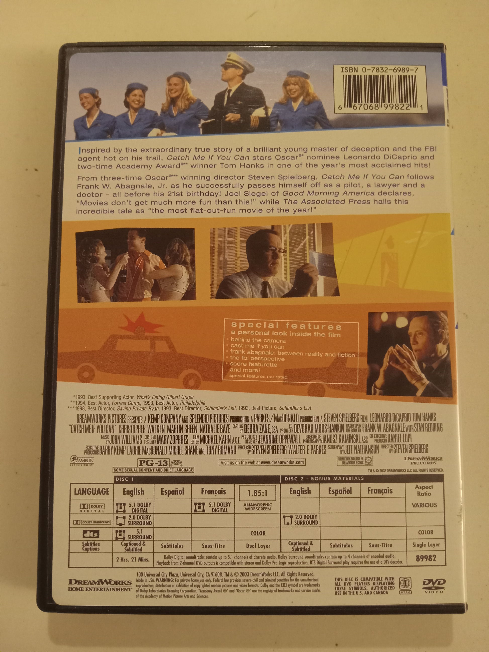 Catch Me If You Can, DVD Movie, 2 Discs, Fullscreen or Widescreen, Rated PG-13, USED.