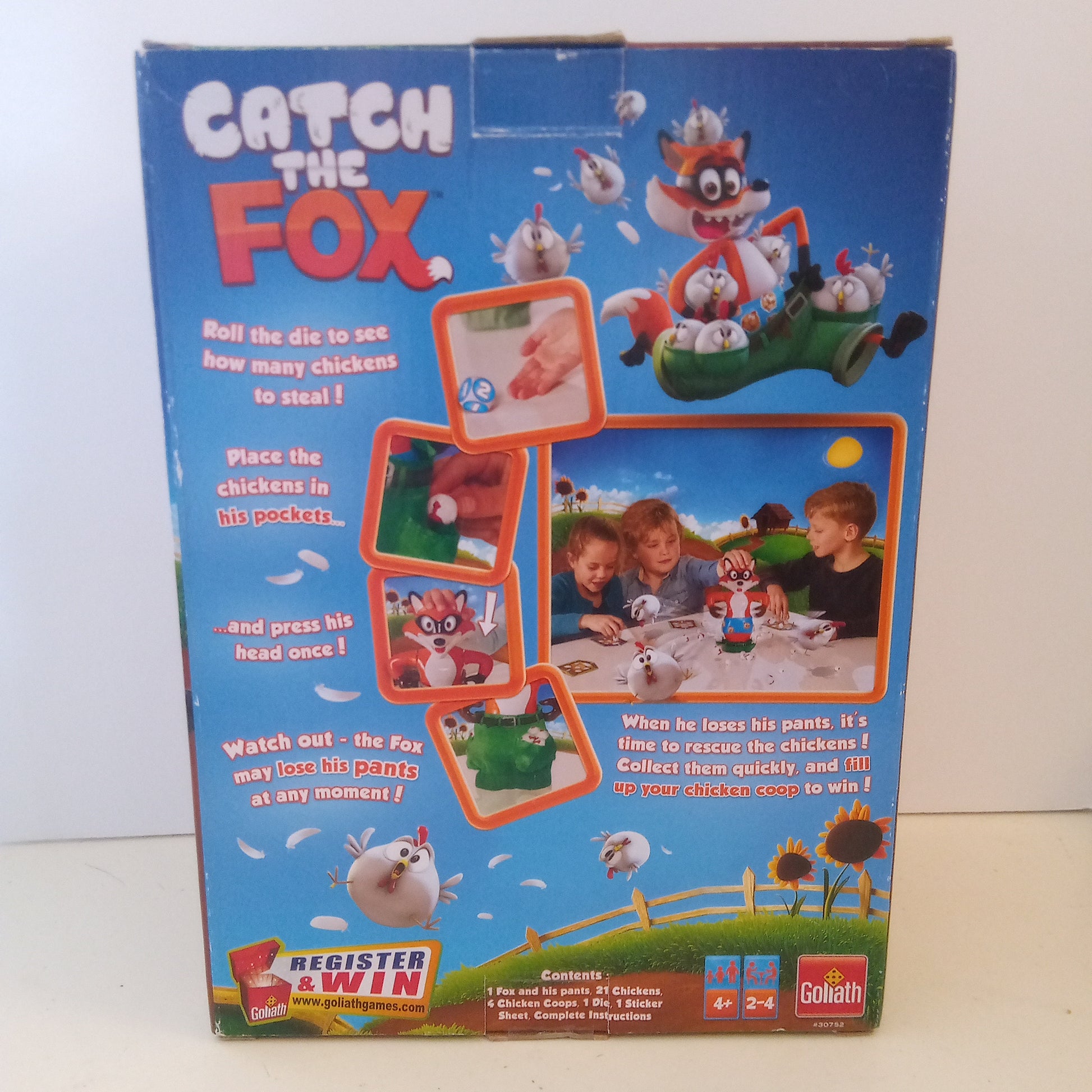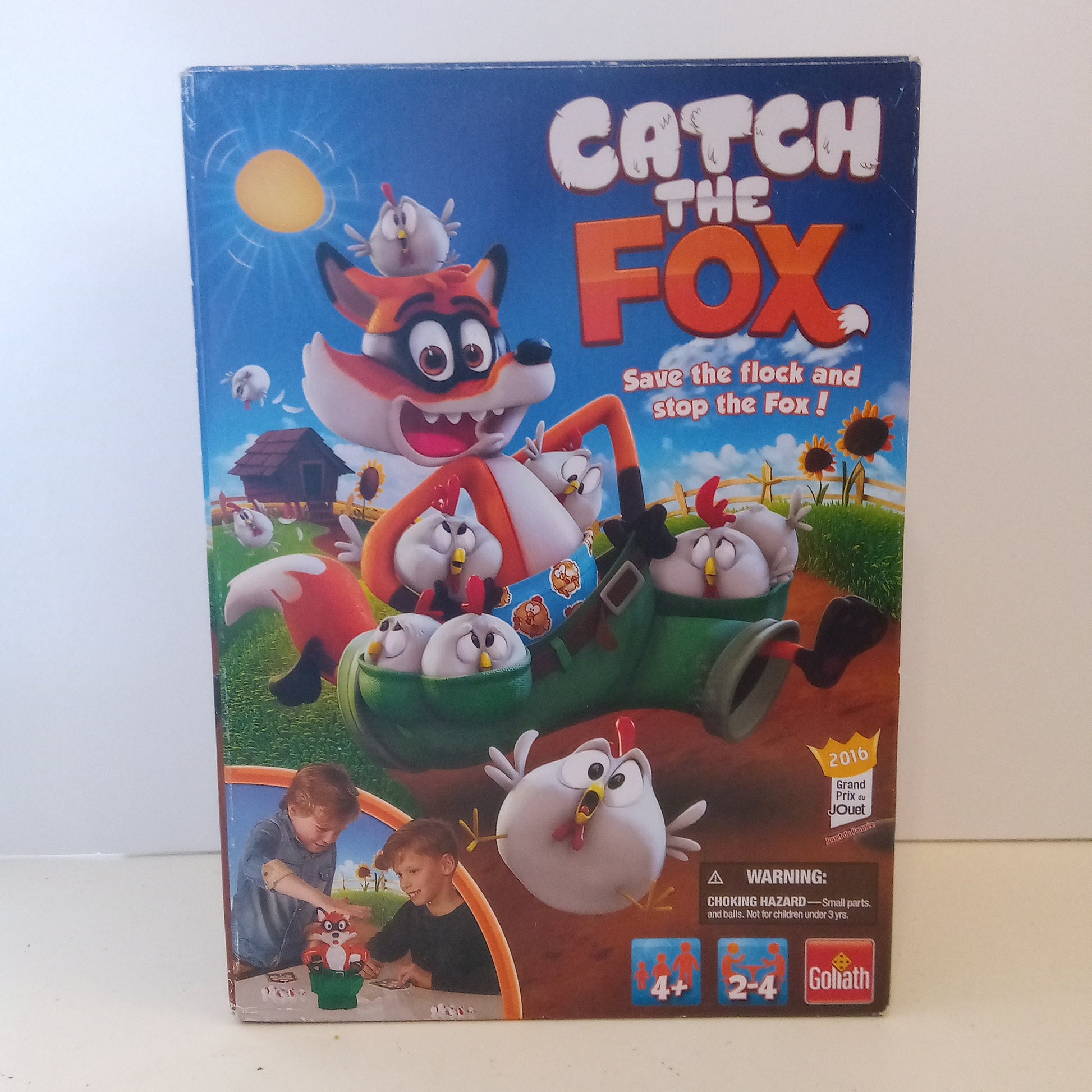 This Catch the Fox game is used but in good condition with no missing pieces. Fun game for kids 4+. Save the chickens and stop the fox. Press fox's head once each turn and he may drop his pants.