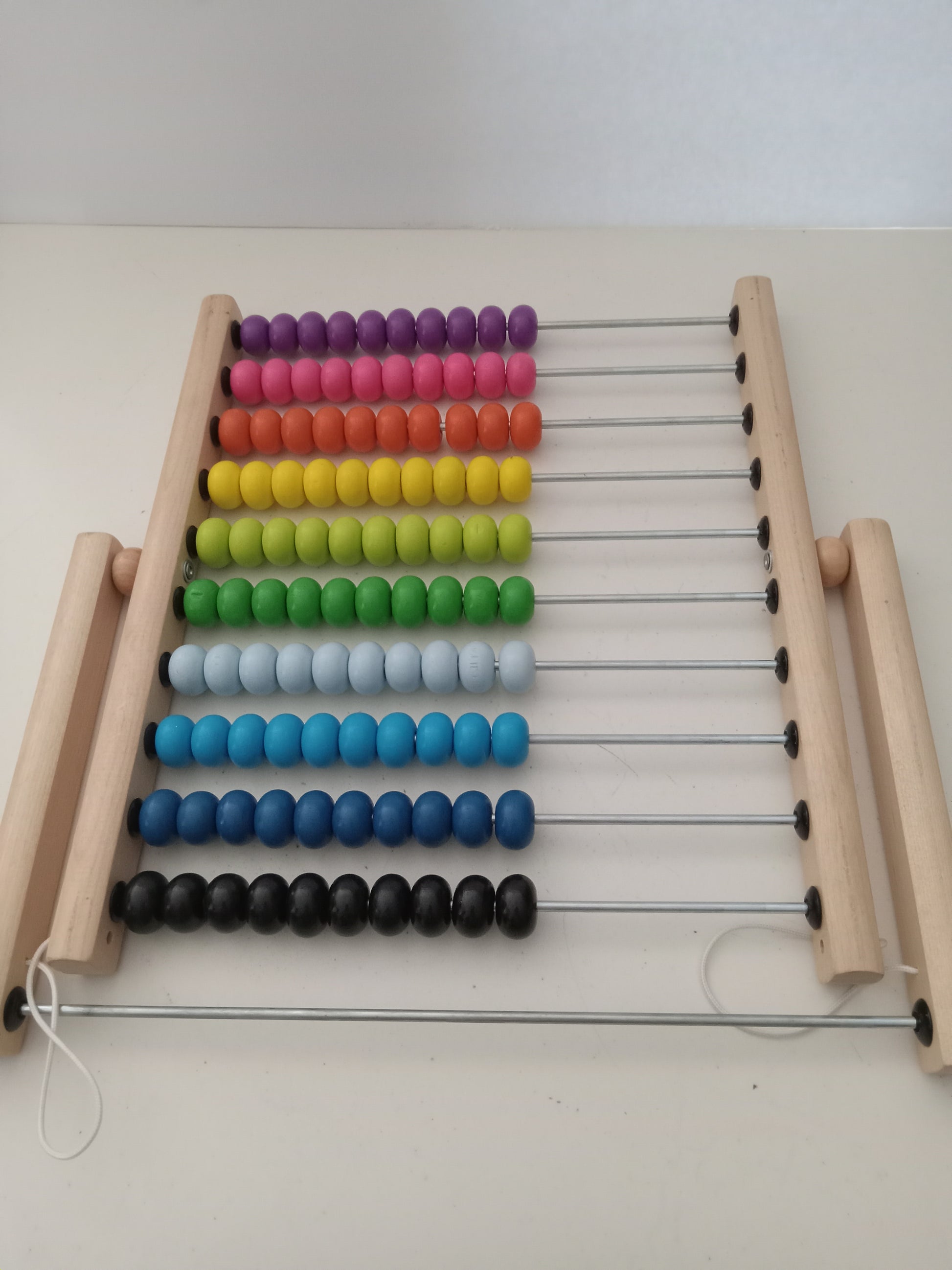 Complete with 10 rows/colors for ten digit calculations, and 10 beads each row.