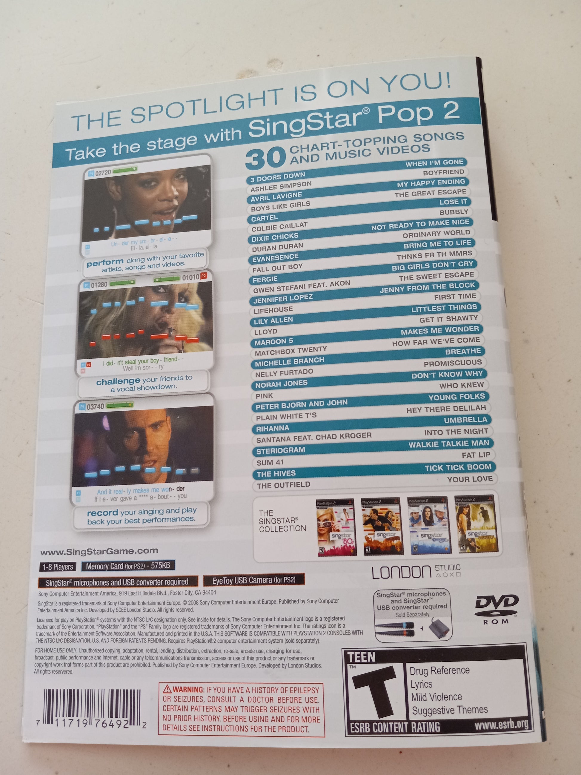 Singstar Pop Volume 2, Playstation 2, Cover Art + Manual Only, USED.