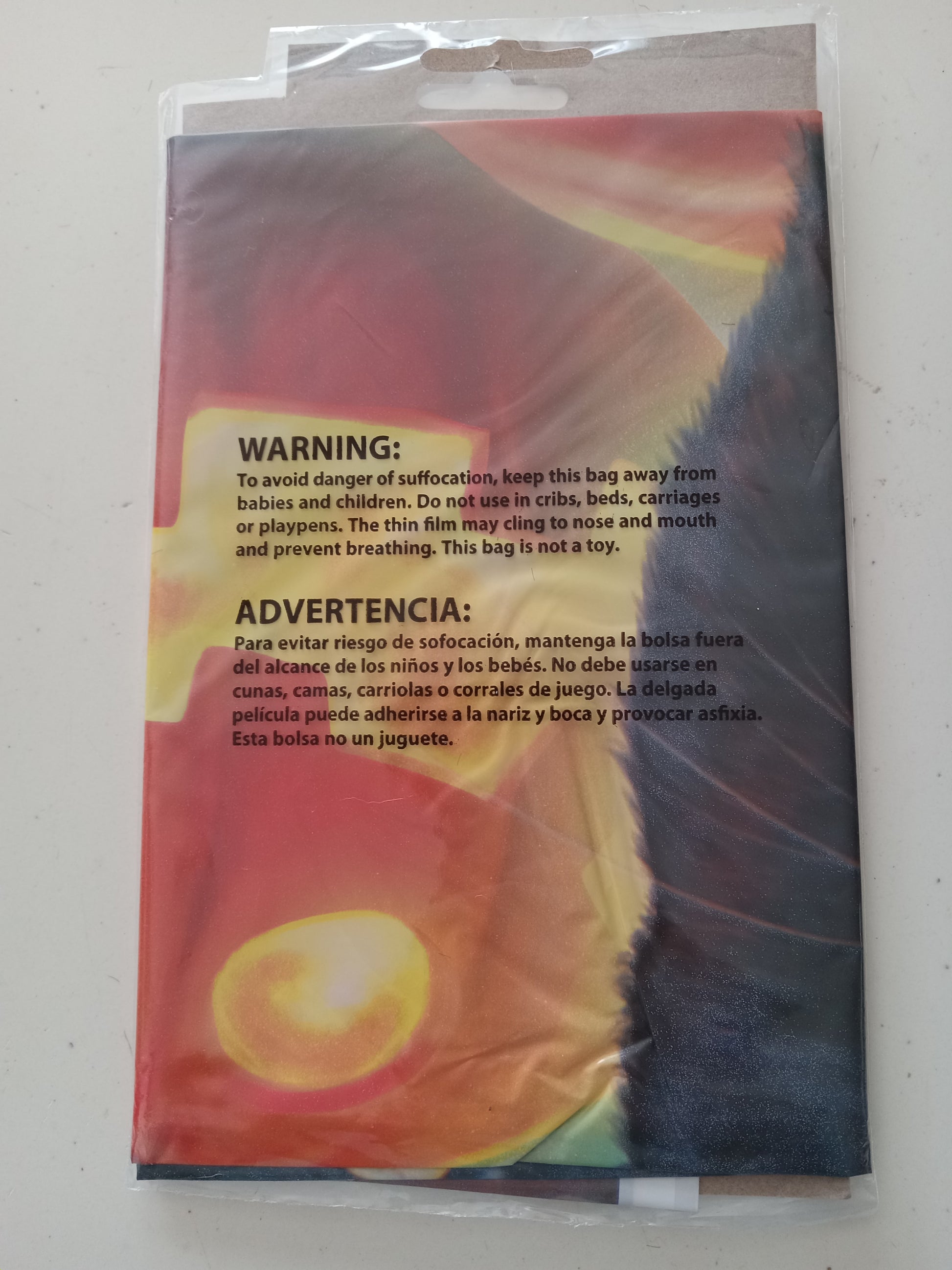 This item is brand new and sealed. It measures 48 inches tall and 30 inches wide. Made of thin plastic.