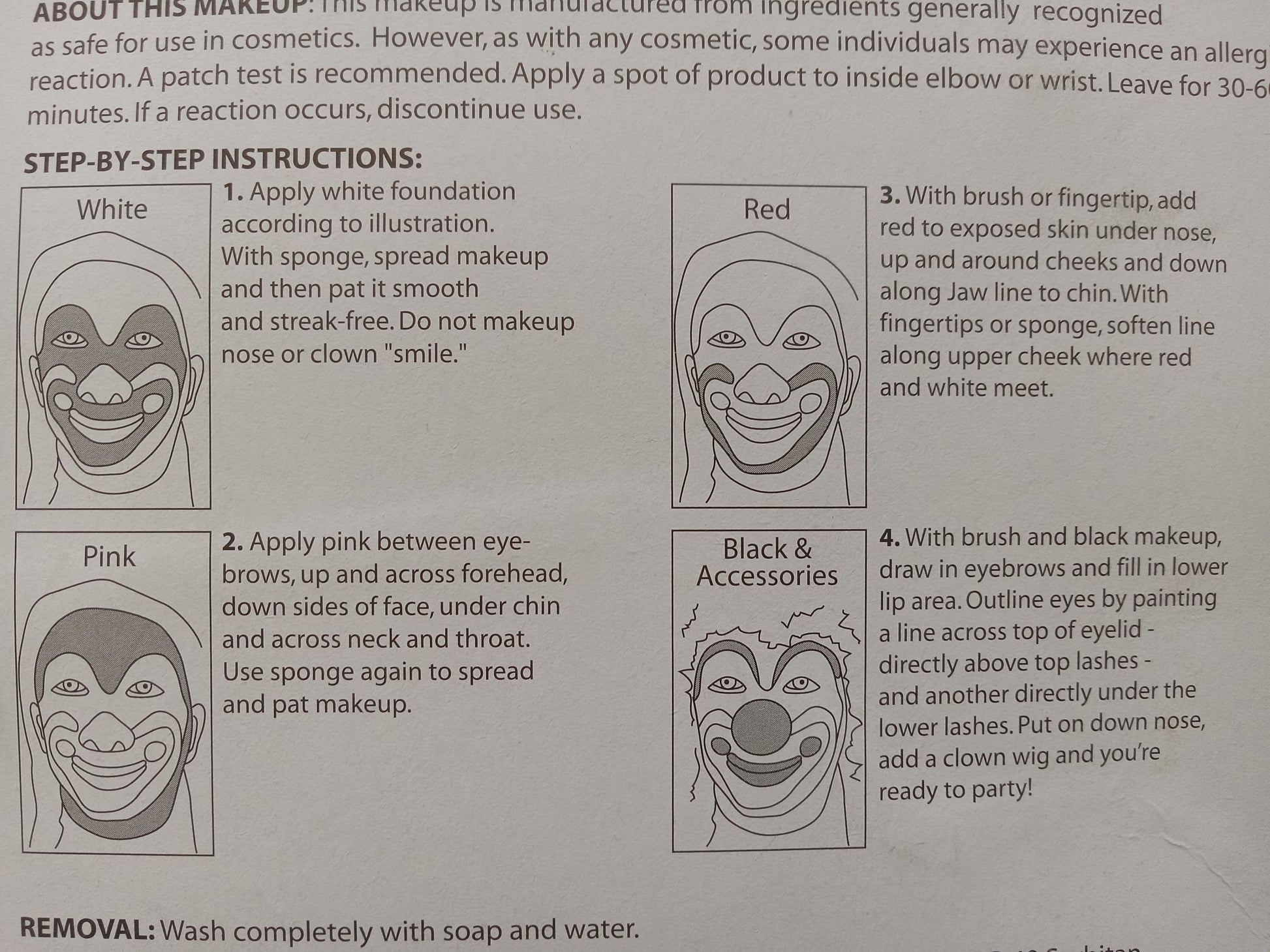 Clown Washable Makeup Kit Totally Ghoul .2oz Cosplay Halloween Costume Accessory, NEW. This washable makeup is brand new and sealed in the original packaging. Made by Totally Ghoul.