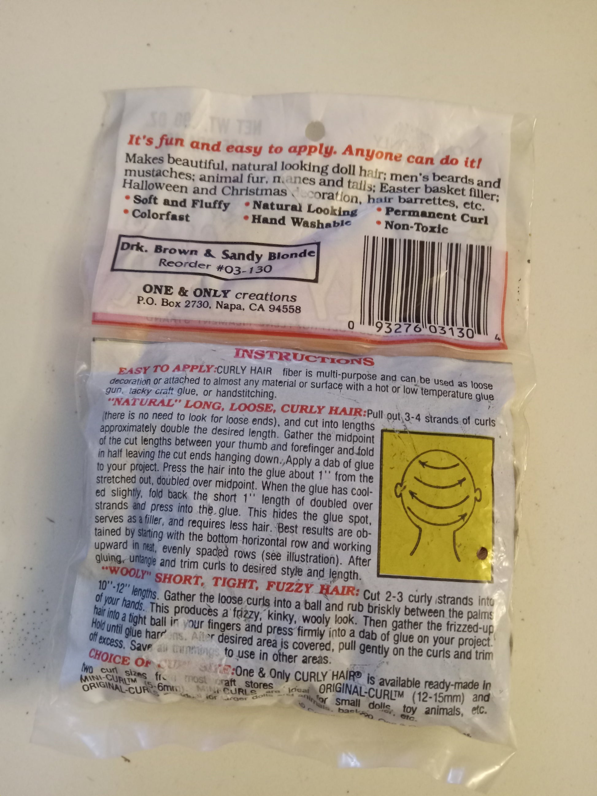 Curly Doll Hair, Two Colors Mixed Brown & Gray/Blonde, 2 Tone, Original Curls, Crafts, NEW.