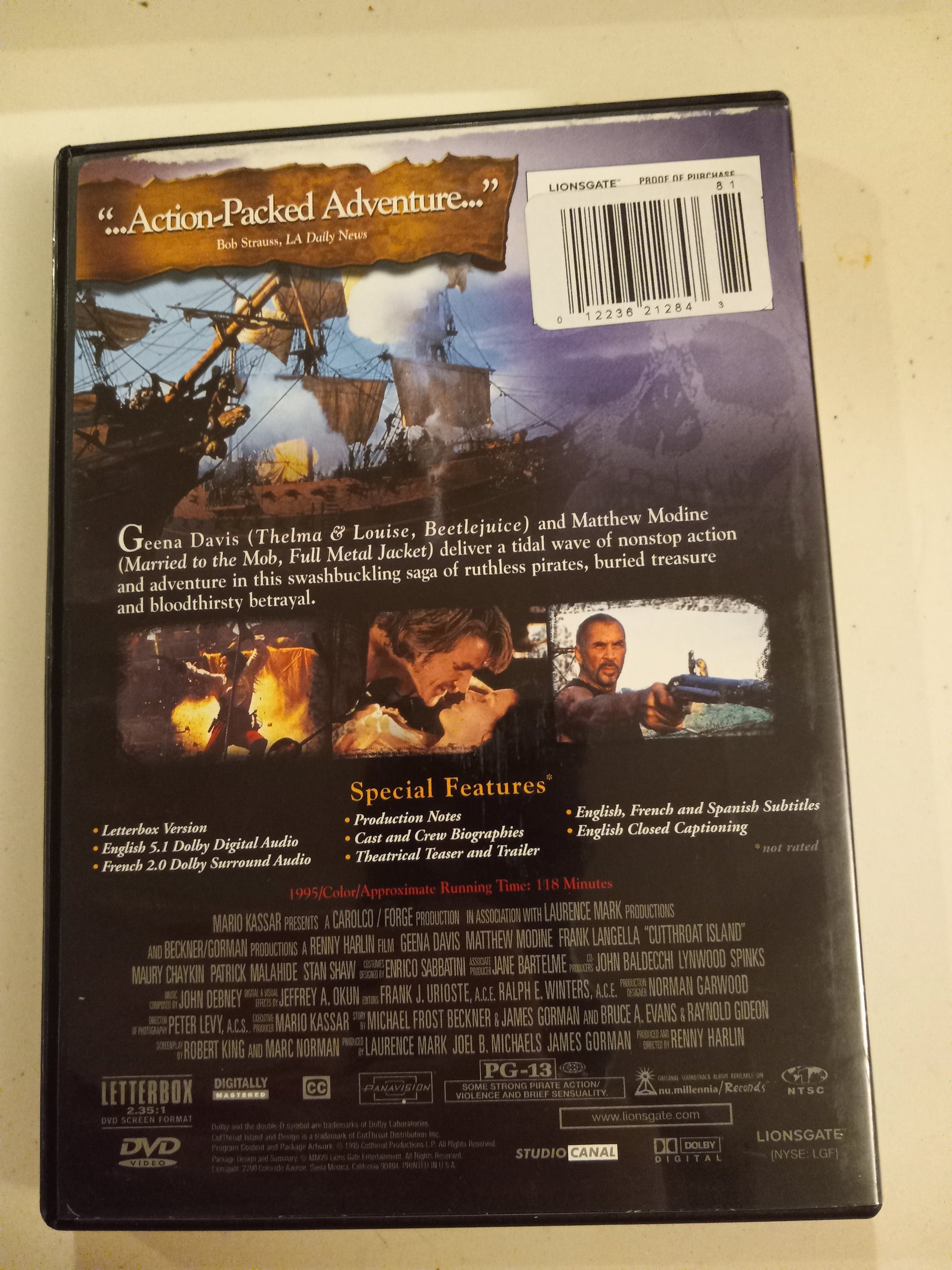 Cutthroat Cut Throat Island, DVD Movie, Widescreen, Rated PG-13, USED