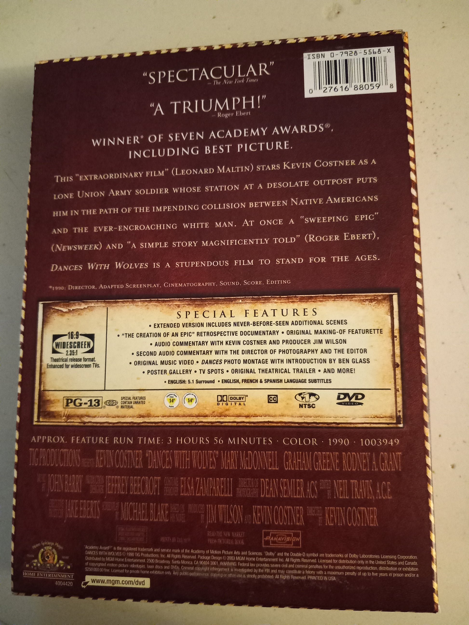 Dance With Wolves, DVD Movie, 2 Disks Special Edition, Widescreen, Rated PG-13, USED.
