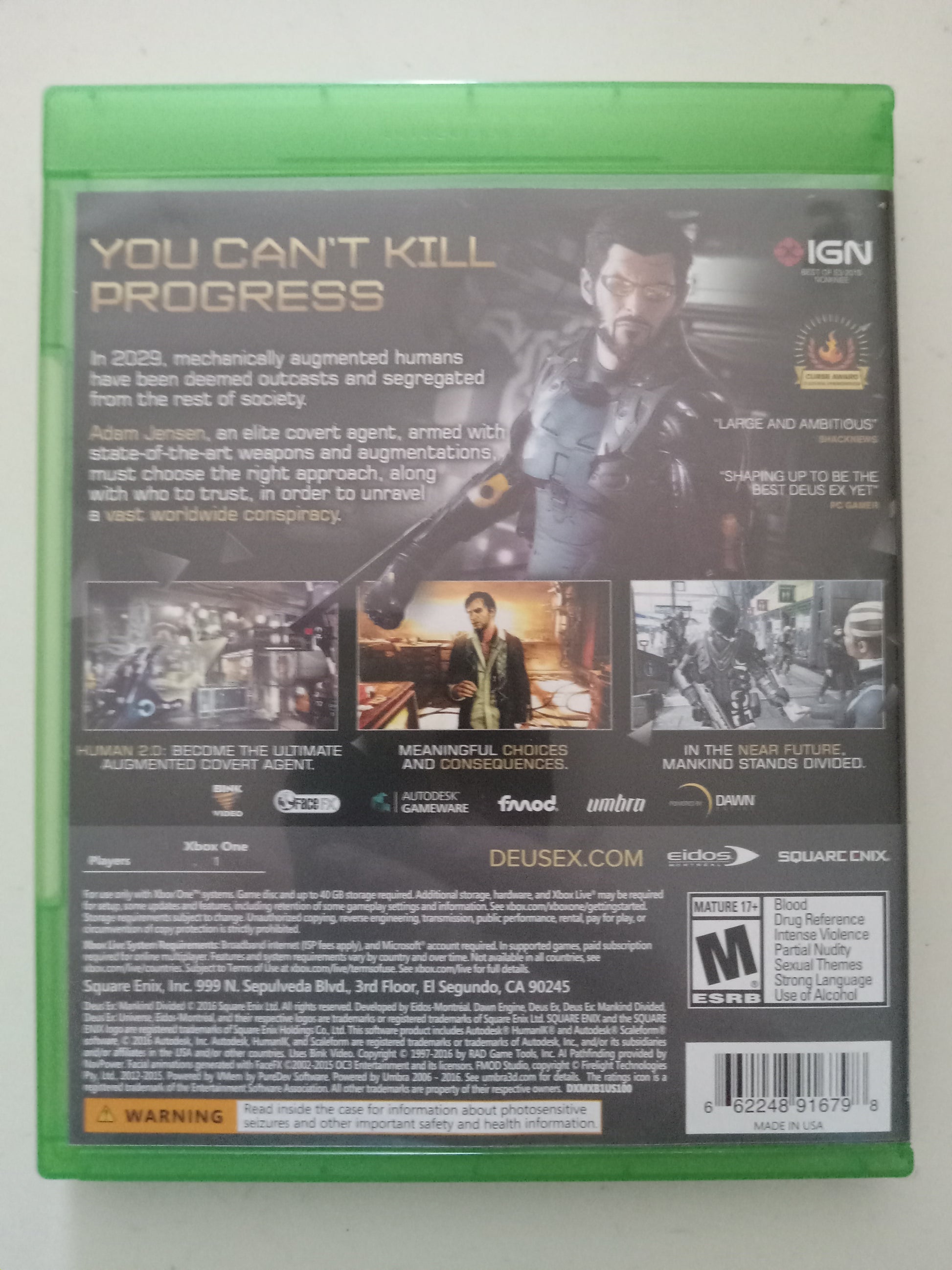 Deus Ex, Mankind Divided, Xbox One Video Game, Rated M, USED