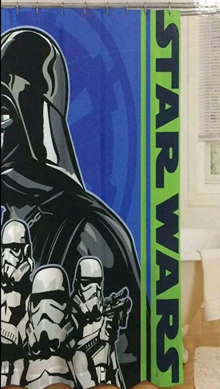 Disney Star Wars Shower Curtain Cover 72"x72" Darth Vader, Clones Storm Troopers, NEW.