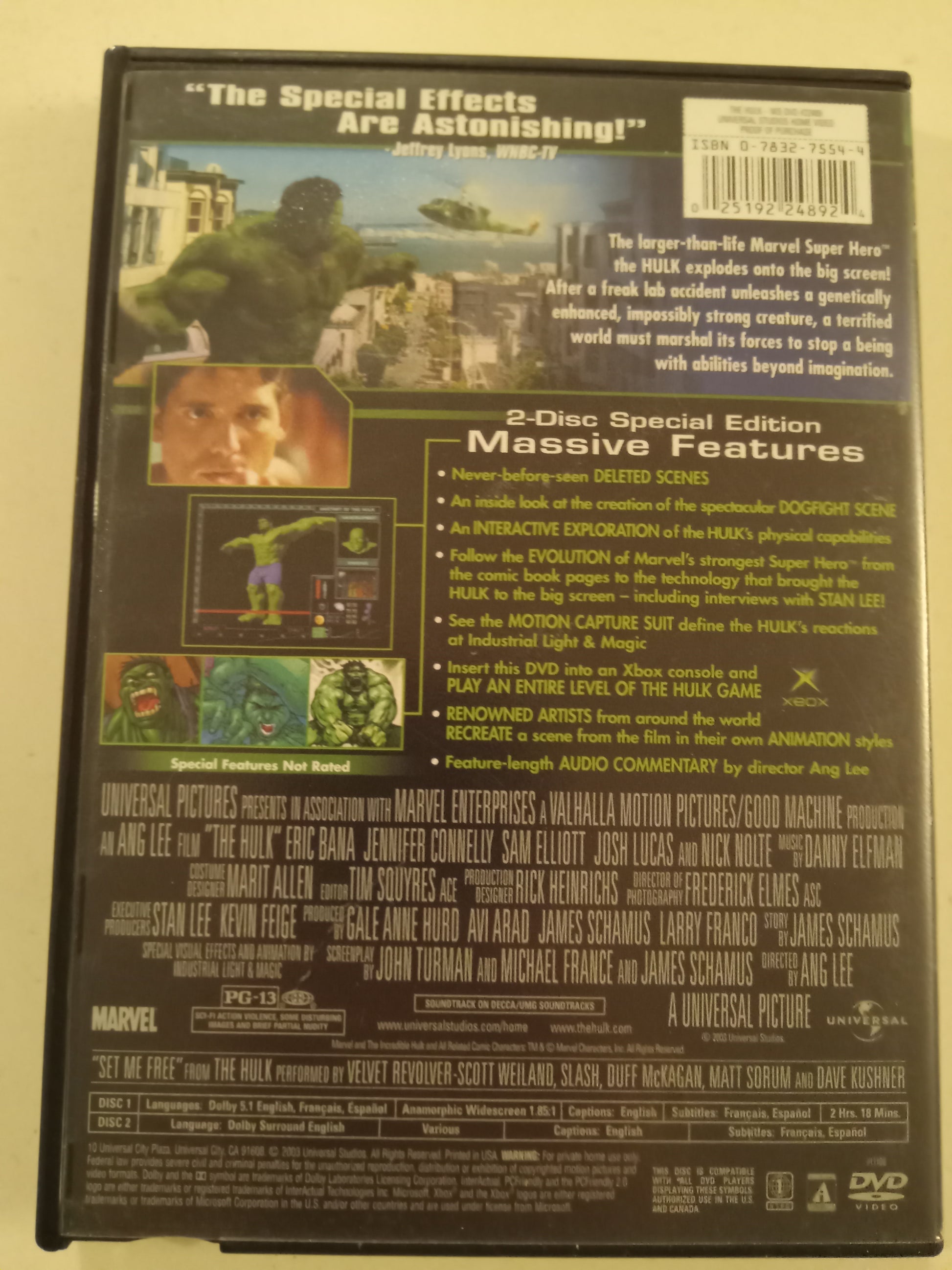 DVD: Hulk (2003, Widescreen, Rated PG-13) 2 Disc Special Edition Eric Bana USED
