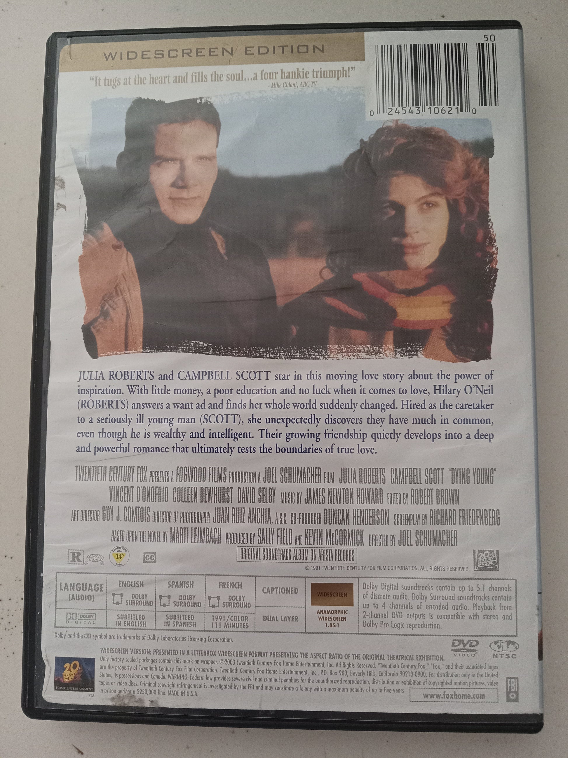 Dying Young, DVD Movie, Julia Roberts Widescreen, Rated R, USED