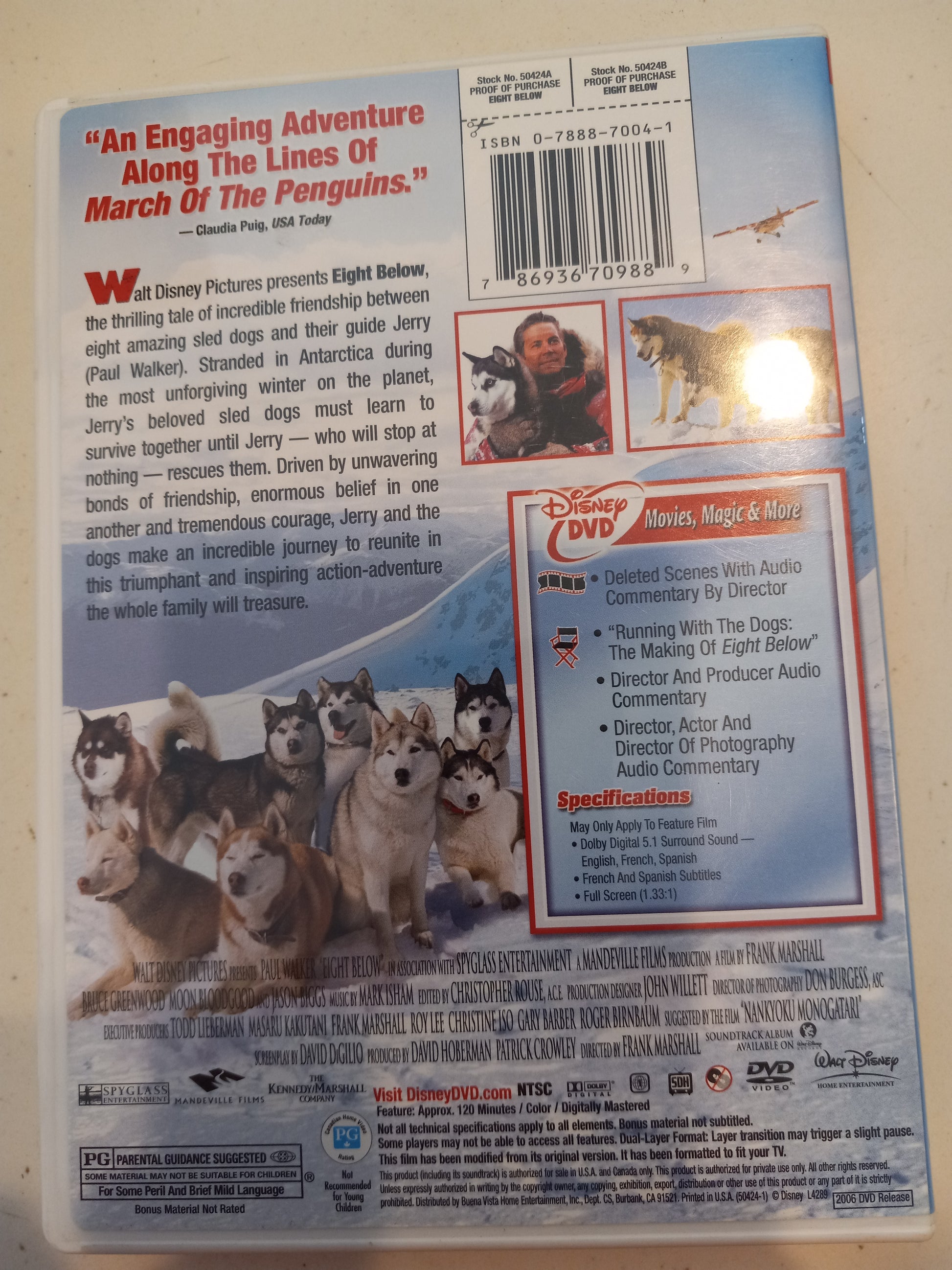 Eight 8 Below, DVD Movie, Fullscreen, Rated PG, USED