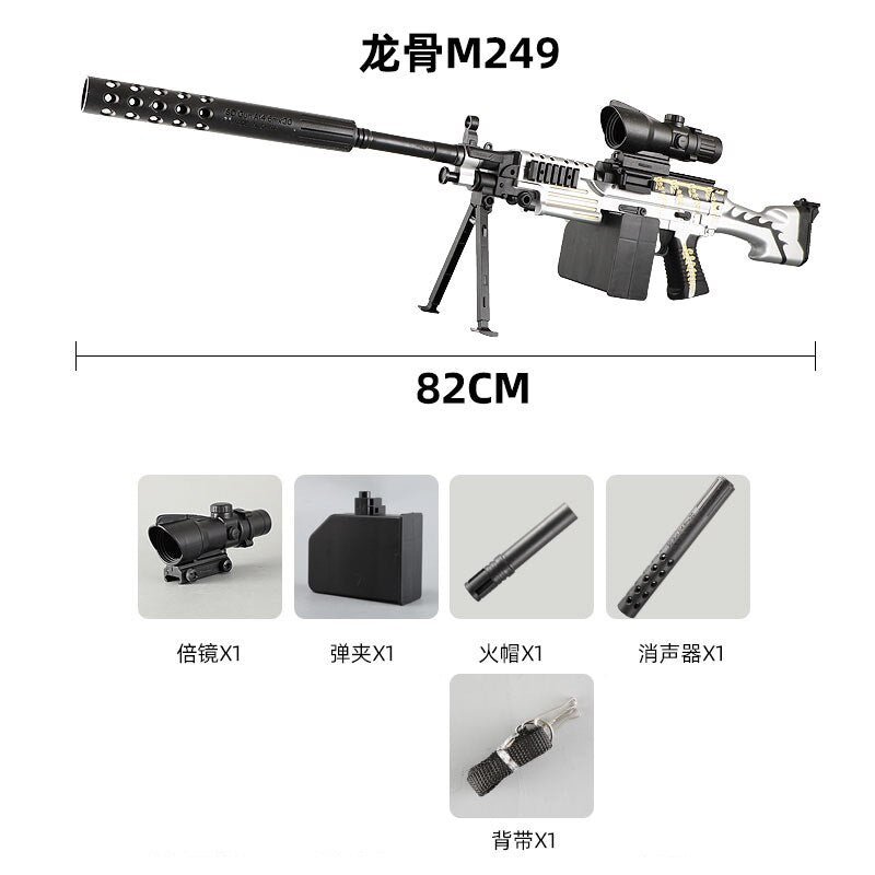 Introducing the Submachine Water Blaster Toy Gun: your ultimate water combat experience! This electric submachine gun is constructed from plastic and features a camouflage finish for serious players. With a shooting range of 10m, you'll be able to hit targets from far away. The Water Blaster Toy Gun comes with 7-8 mm water gel bullets that are easy to use and store. Measuring 82 cm in length, this gun packs a punch! The Submachine Water Blaster Toy Gun is perfect for fun on hot days, family battle simulations, or even just backyard target practice. So the next time you're ready for epic water battles, arm yourself with the Submachine Water Blaster Toy Gun - the ultimate tool in tactical warfare!