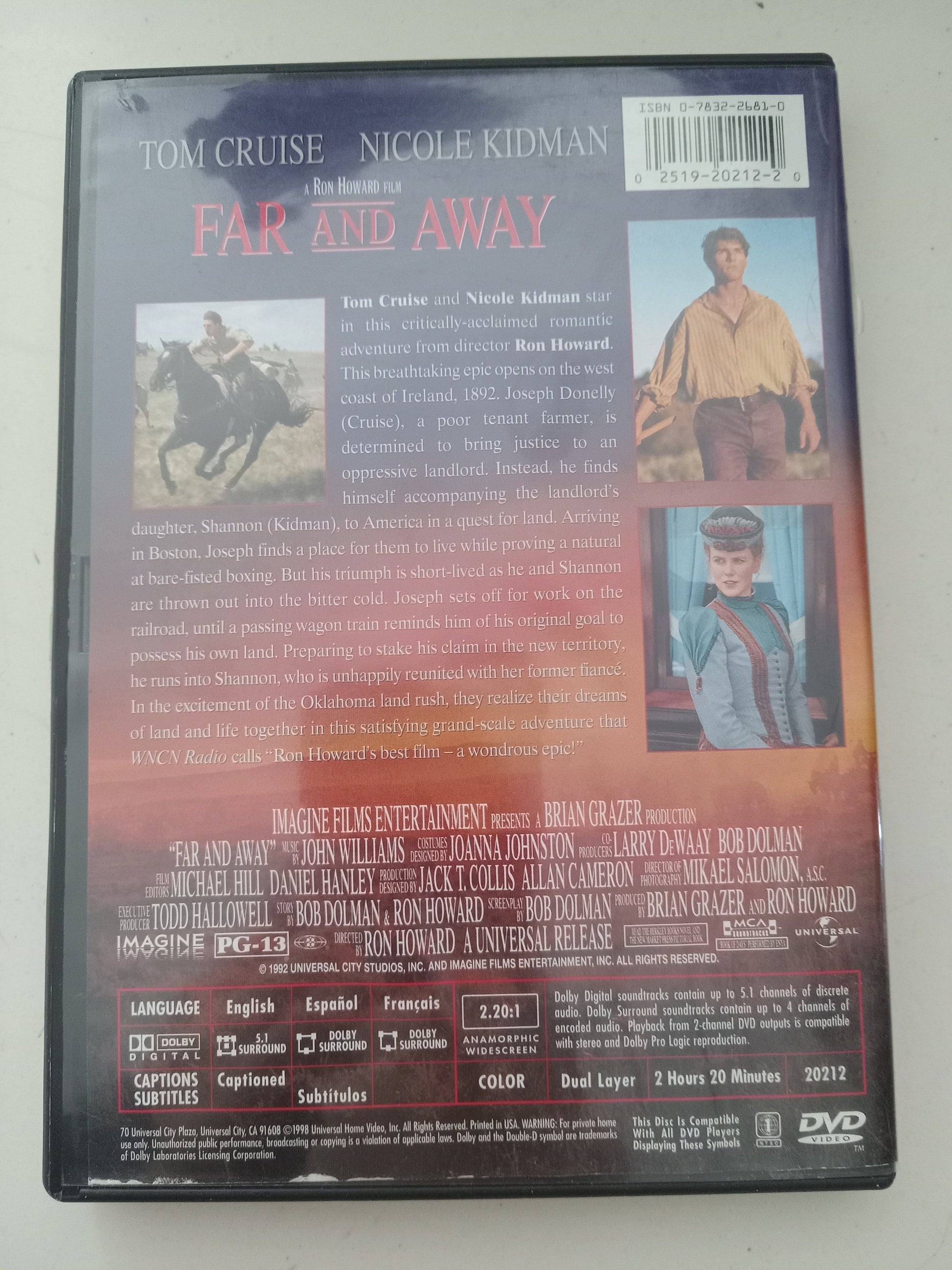 Far And Away, DVD Movie, Tom Cruise Widescreen, Rated PG-13, USED