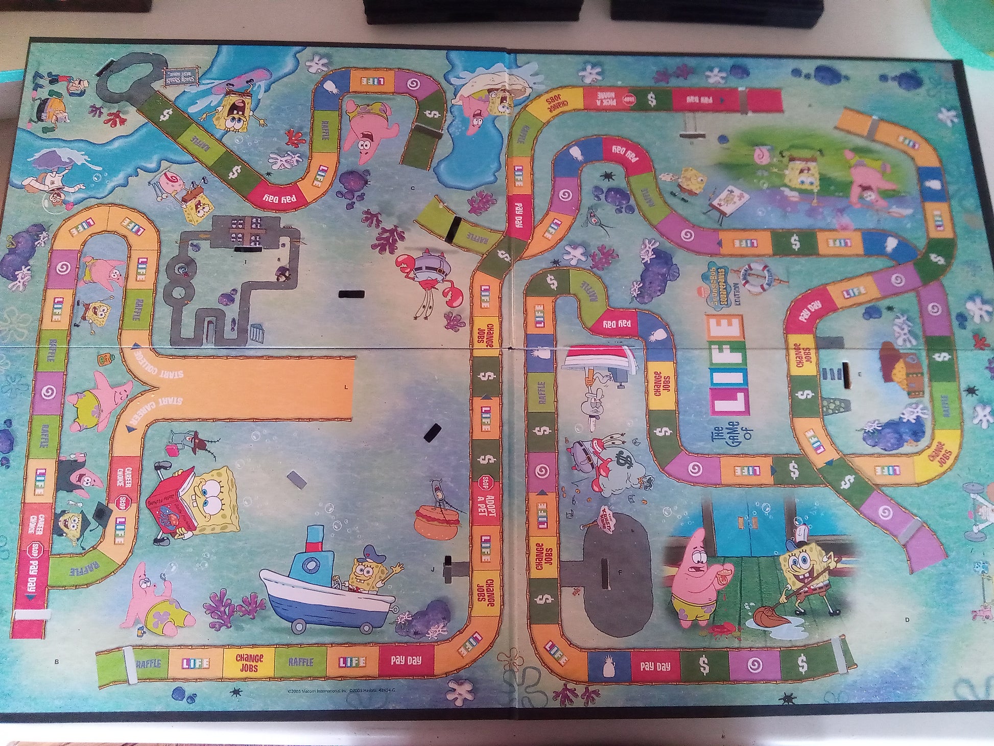 This is The Game Of Life Sponge Bob edition. Board Game is USED but in great condition. Box has some minor usual wear.