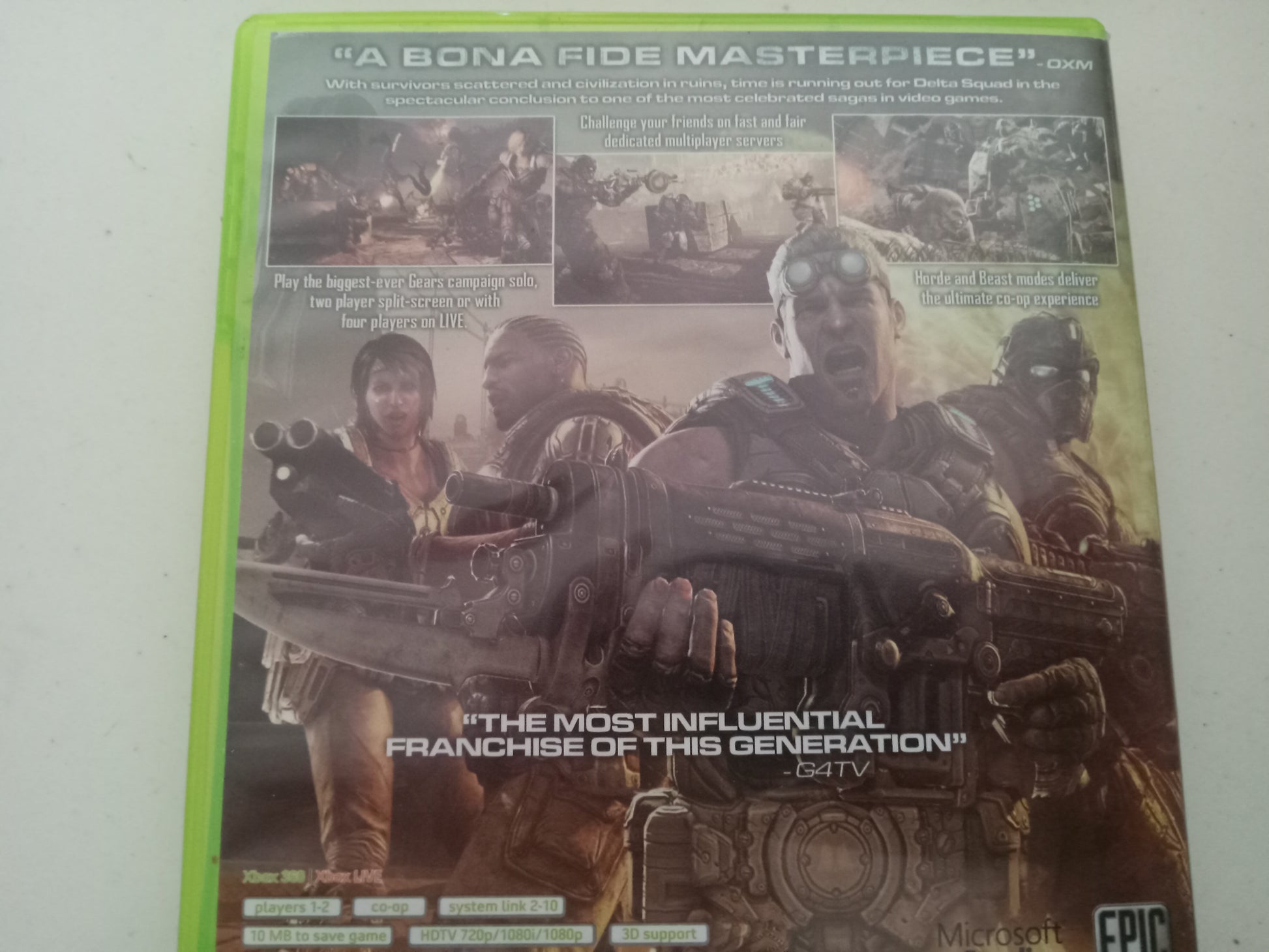 Gears of War 3, Xbox 360 Video Game, Rated M, USED. This item is used in great condition. Game disc is in great condition with only a few light minor scratches and guaranteed to play without any problems.