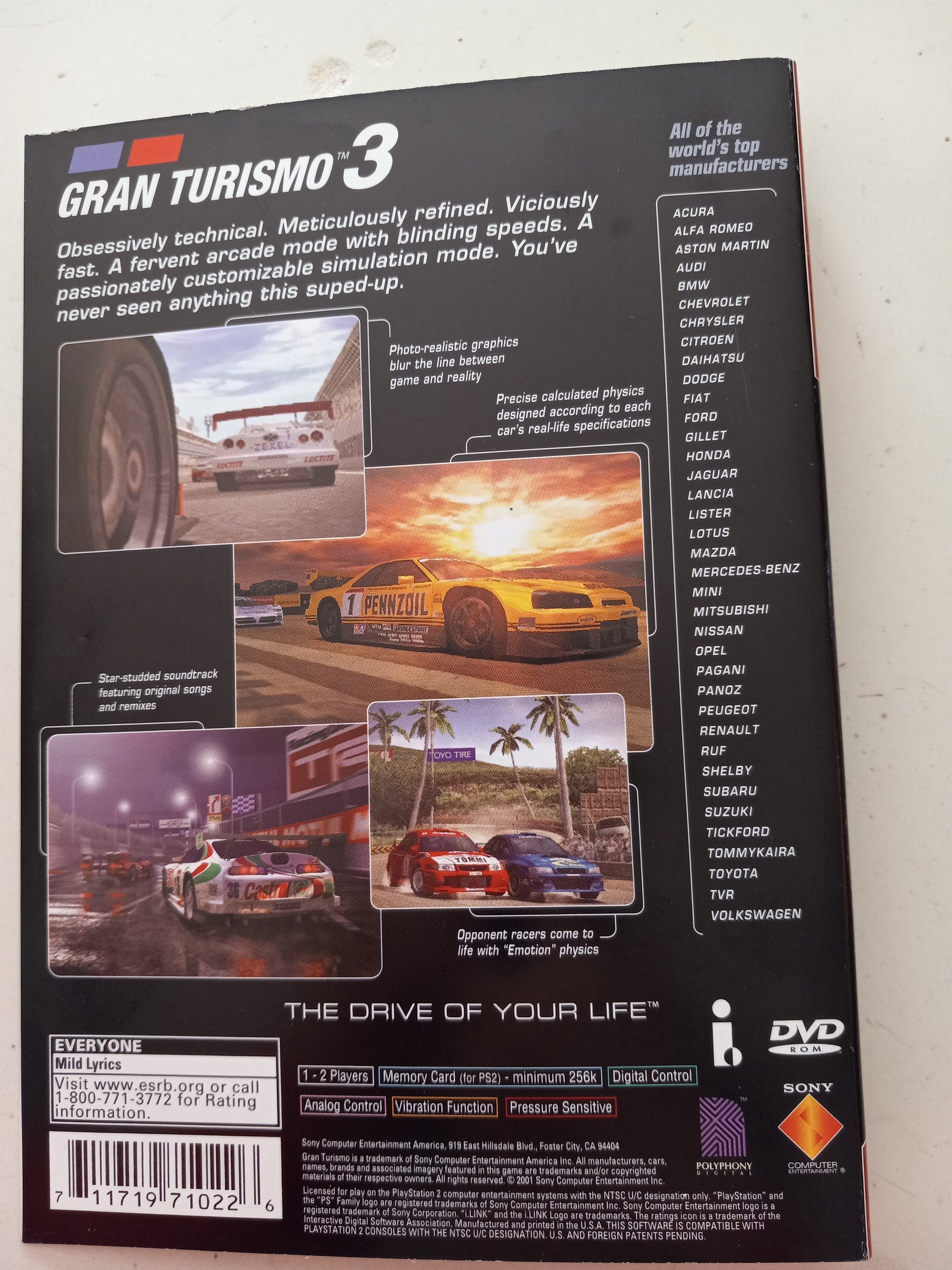 Gran Turismo 3 A-Spec, Playstation 2, Cover Art + Manual Only, USED