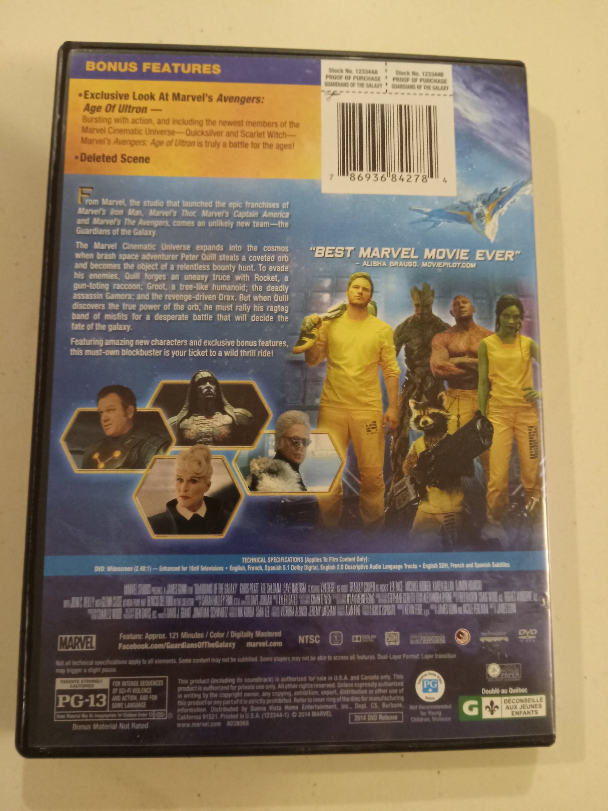 Guardians Of The Galaxy (1), DVD Movie, Chris Pratt Widescreen, Rated PG-13, USED