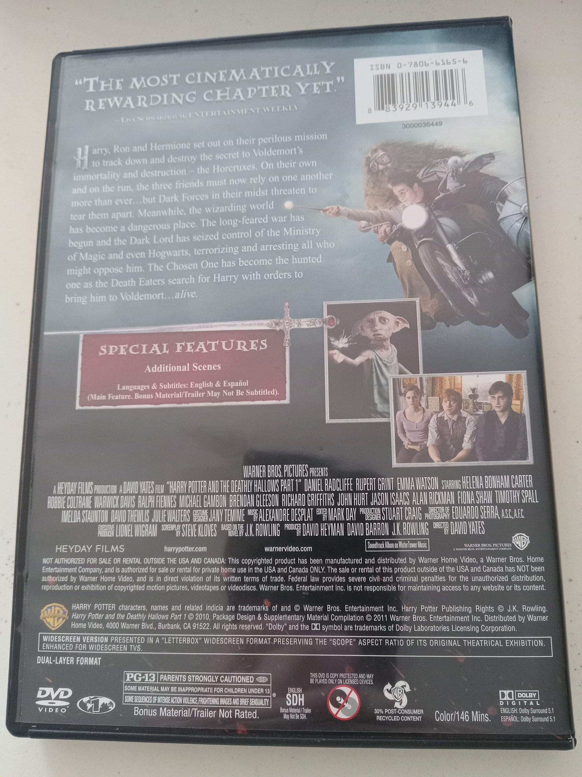 Harry Potter And The Deathly Hallows Part 1, DVD Movie, Widescreen, Rated PG-13, USED
