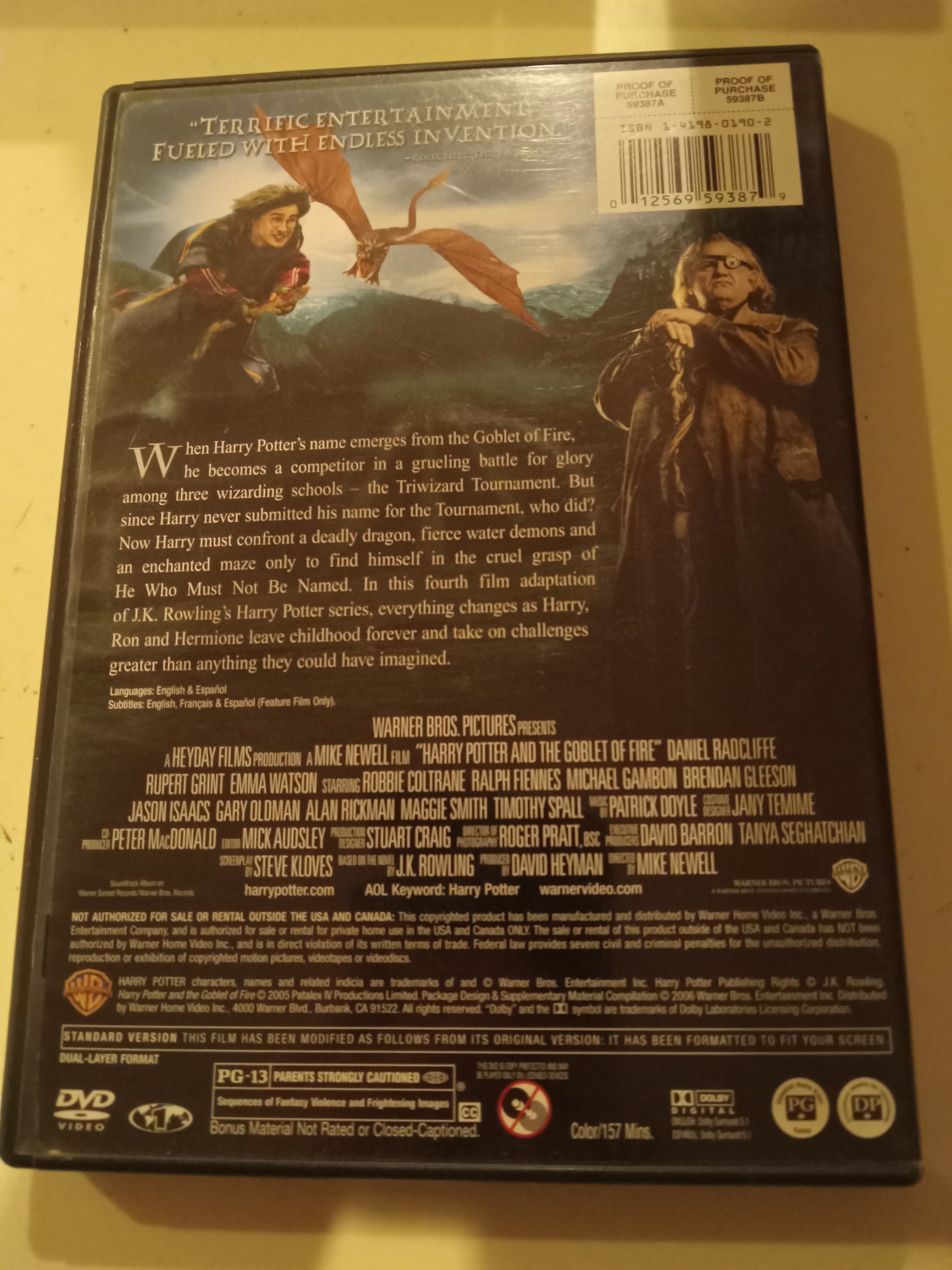 Harry Potter And The Goblet Of Fire, DVD Movie, Widescreen and Fullscreen, Rated PG-13, USED.