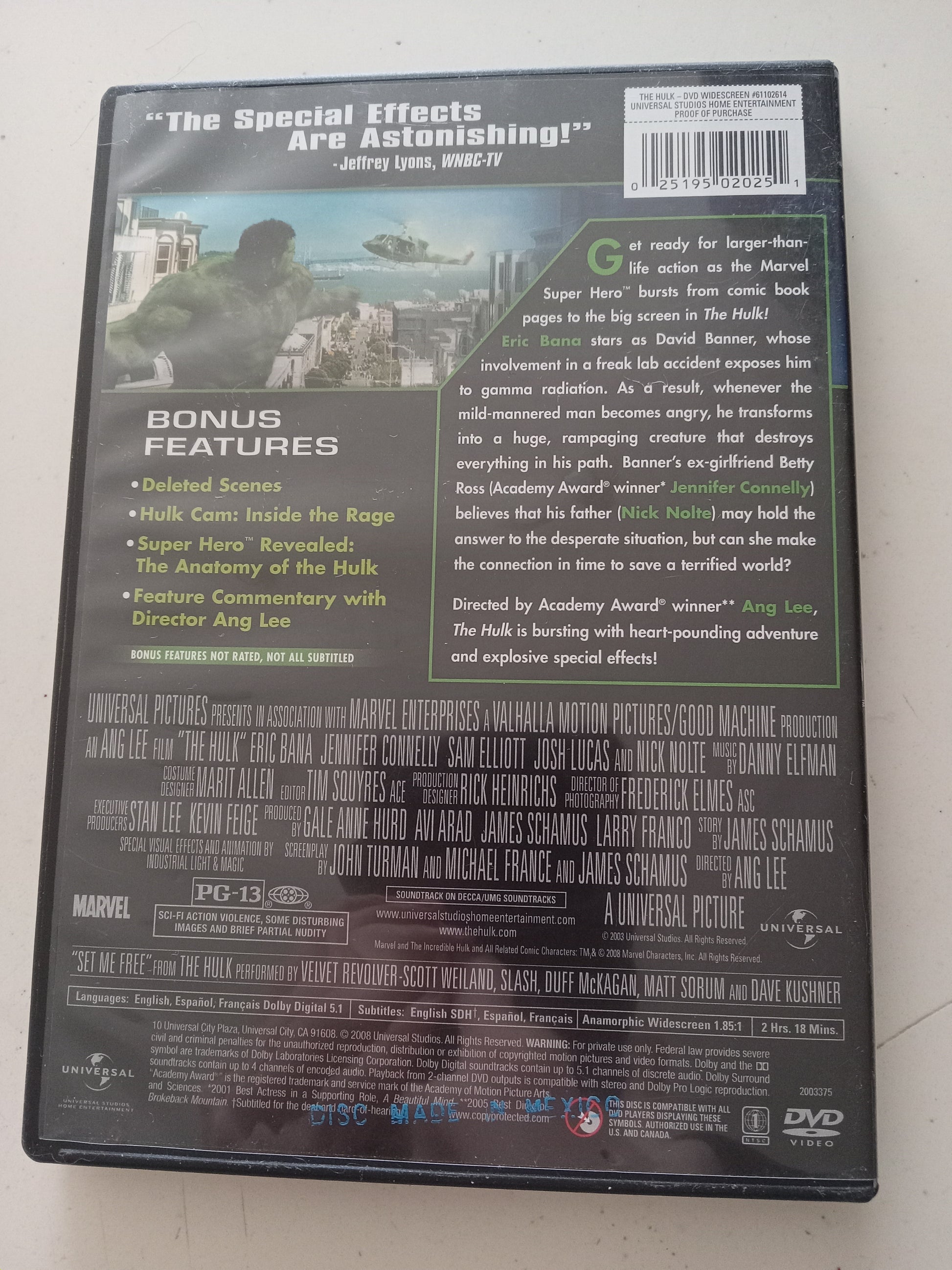 Hulk, DVD Movie, Eric Bana Widescreen, 2008 Rated PG-13, USED