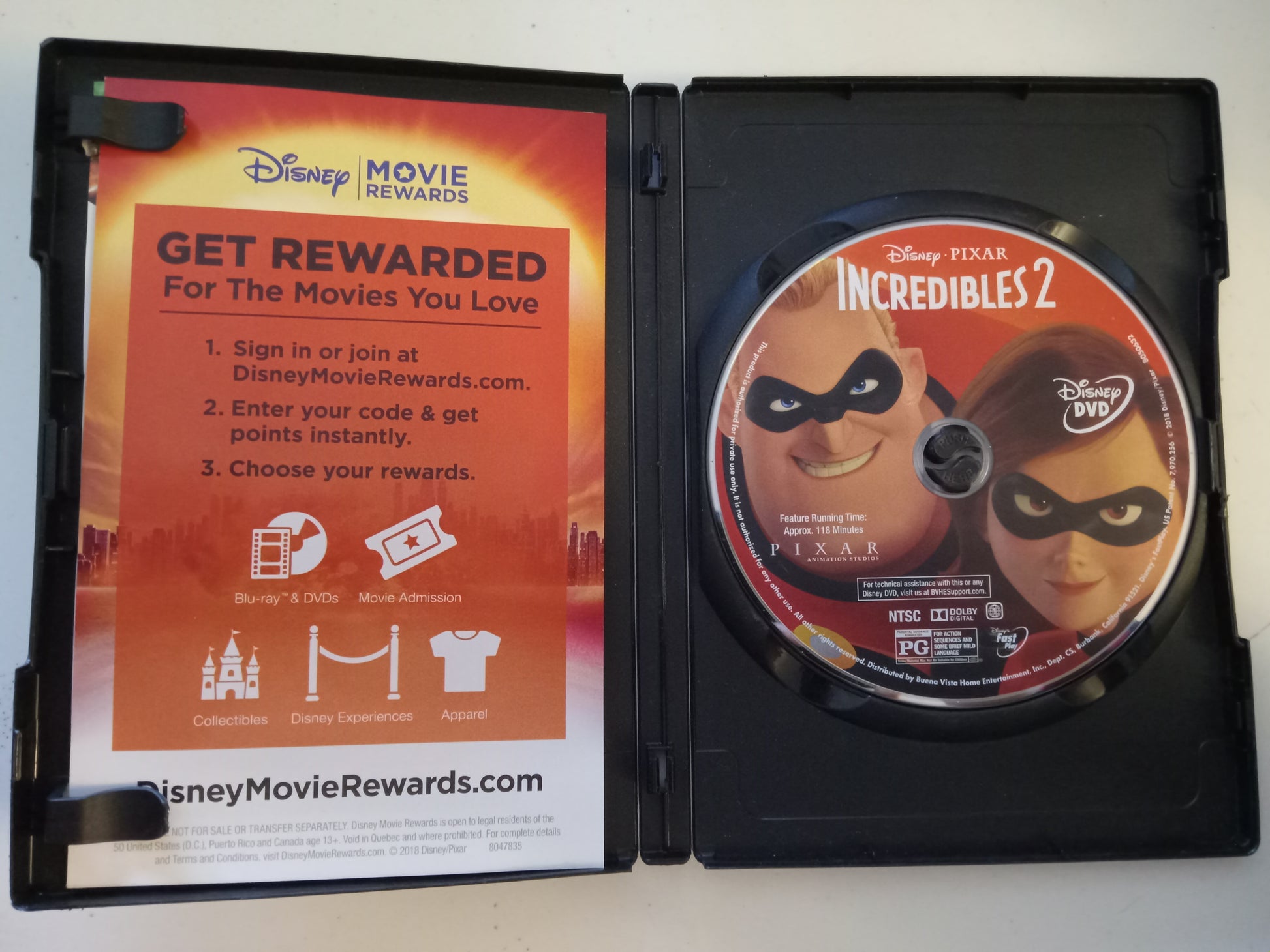 Incredibles 2, Disney Pixar Animation DVD Movie, Widescreen, Rated PG, USED