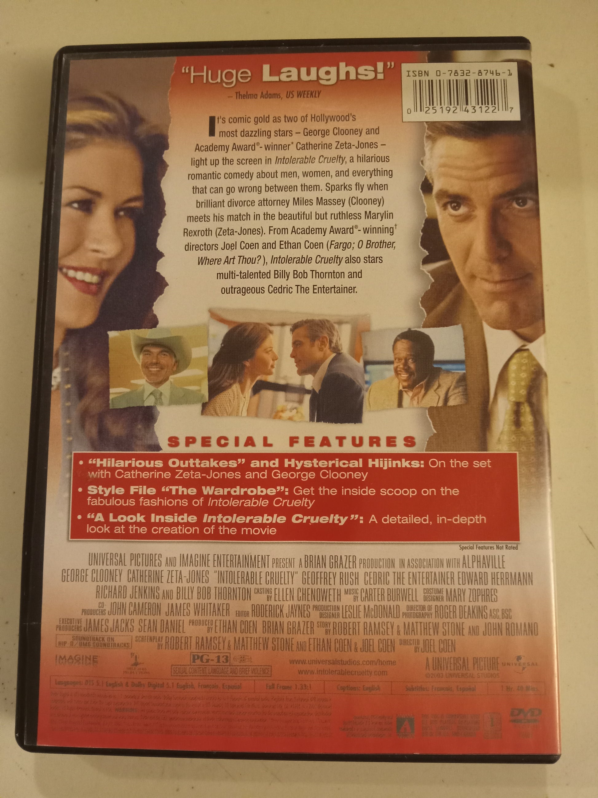 Intolerable Cruelty, DVD Movie, Fullscreen, Rated PG, USED