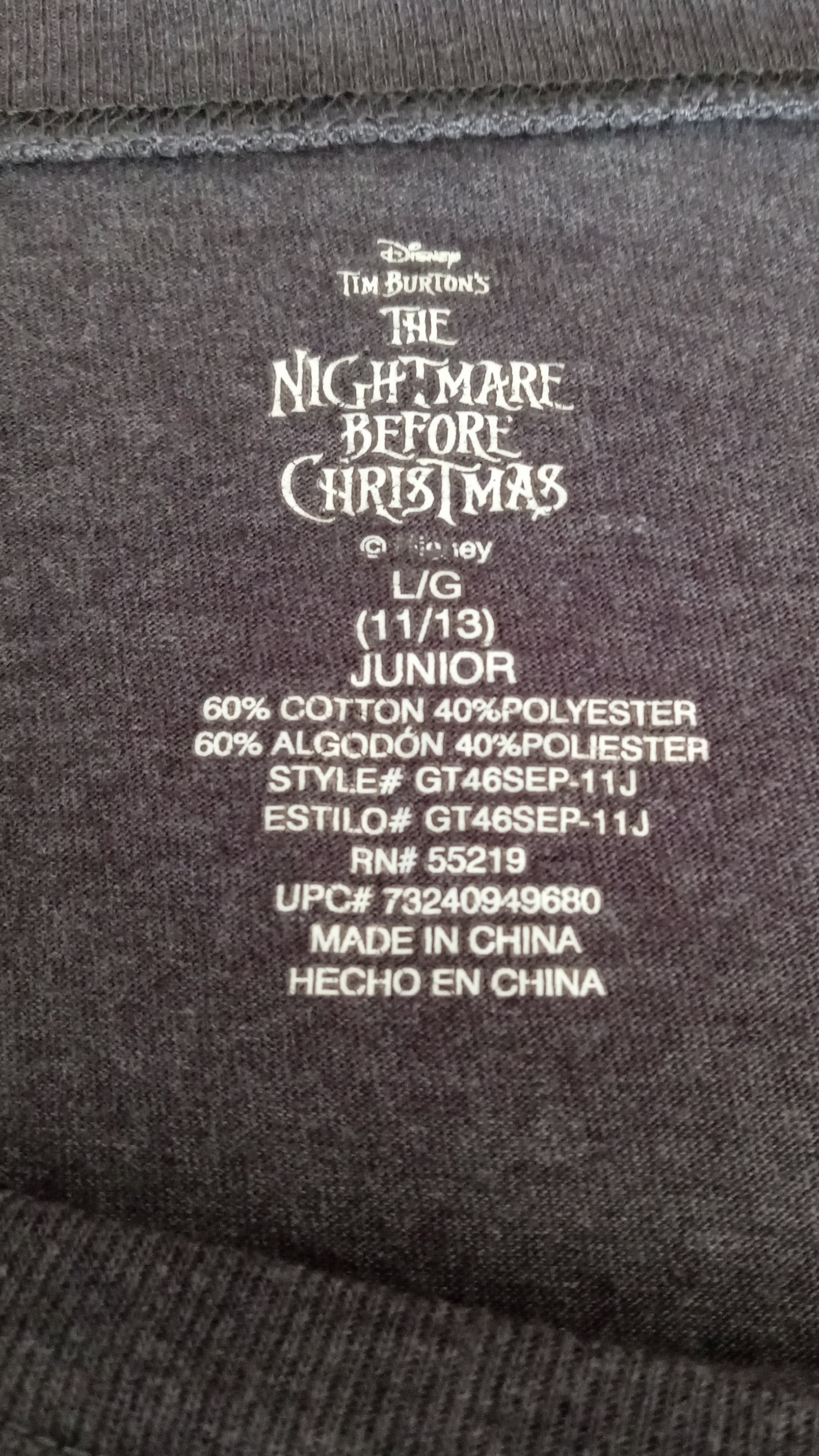 Jack Skellington Nightmare Before Christmas T-Shirt L (11-13) Junior, LIKE NEW