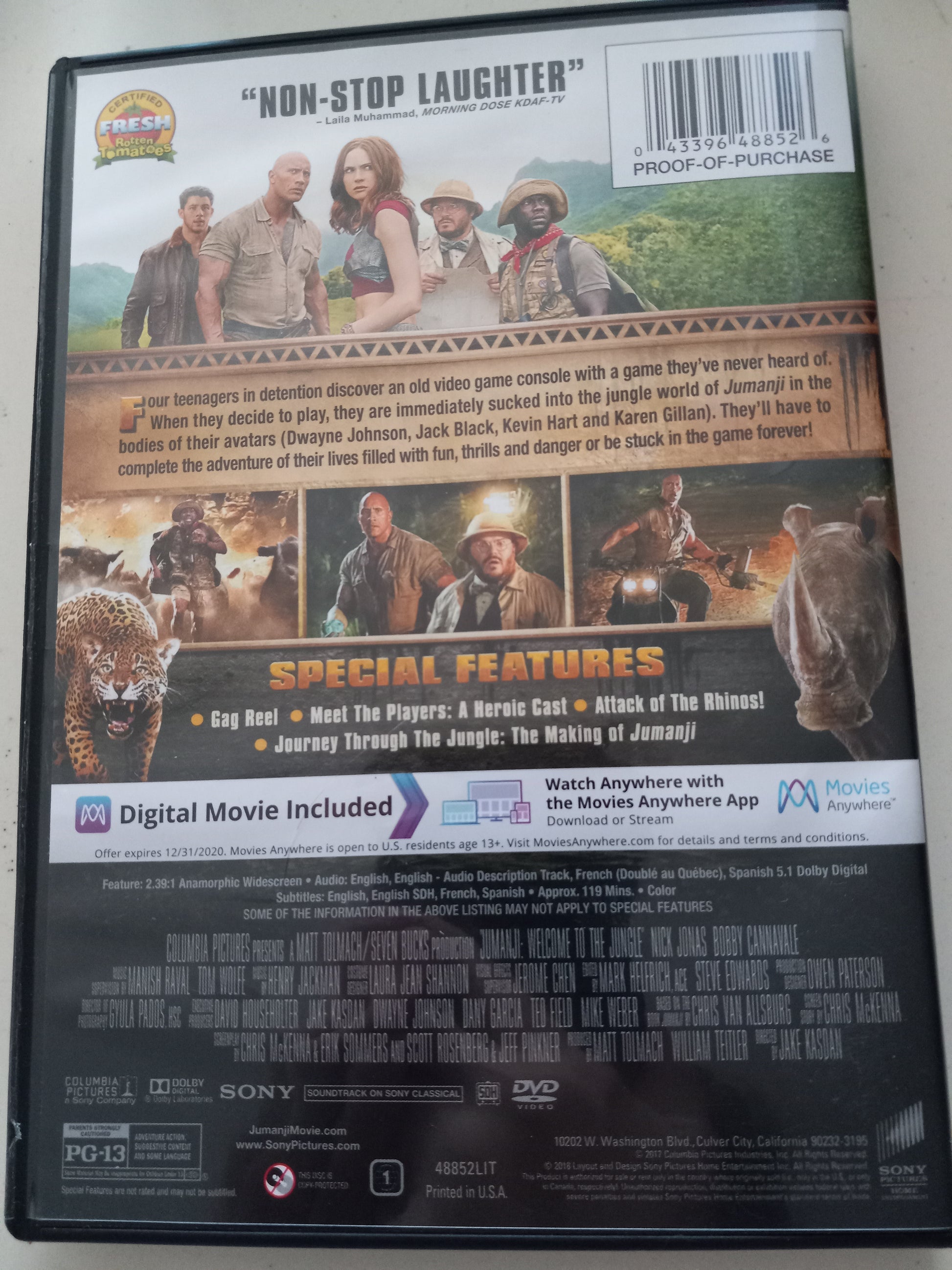 Jumanji Welcome To The Jungle, DVD Movie, Widescreen, Rated PG-13, USED