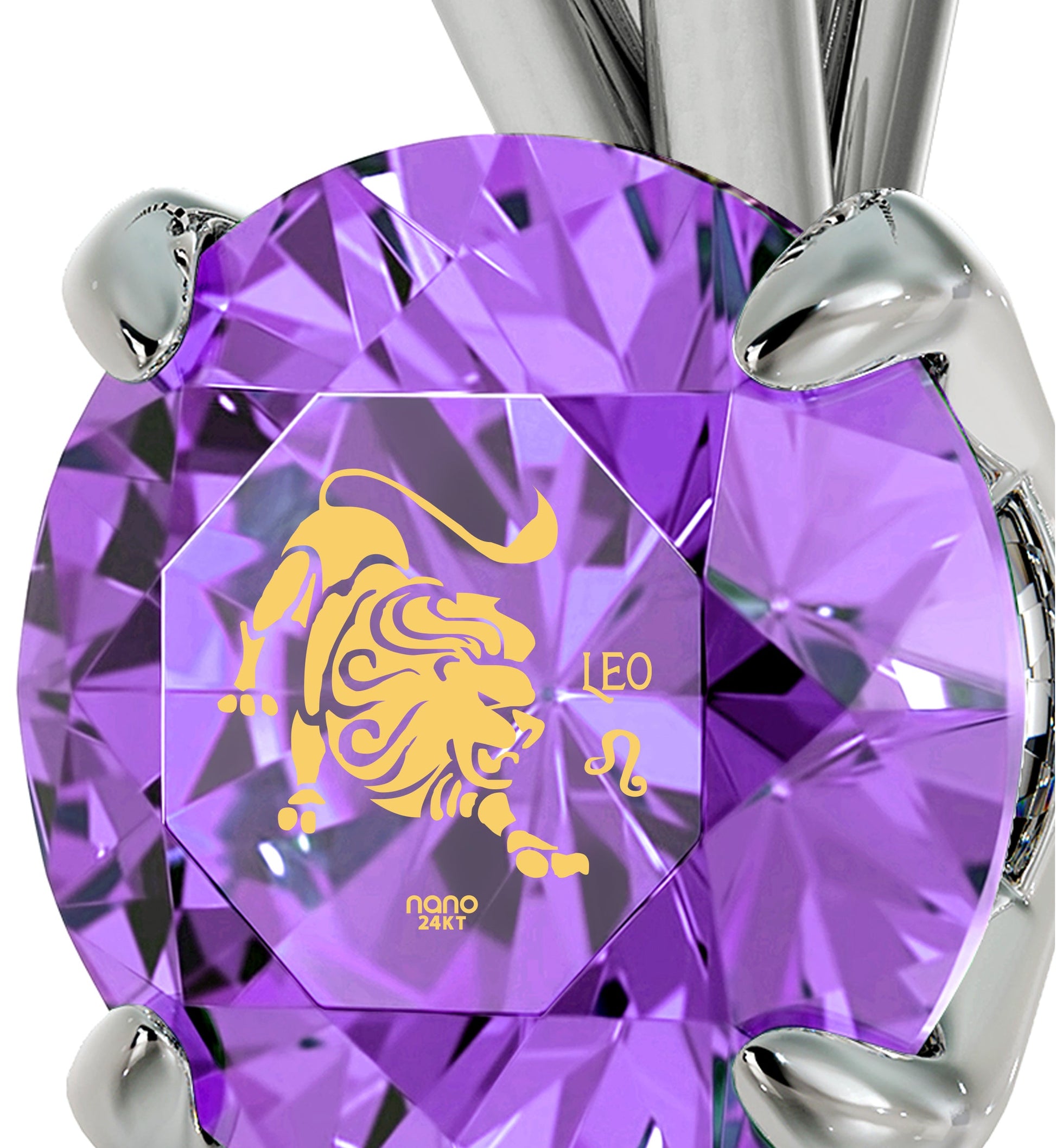 Leo Zodiac Sign Lion Necklace Sterling Silver 24 K Gold, Light Green,, Light Purple, Blue Turquoise, AMB, NEW!