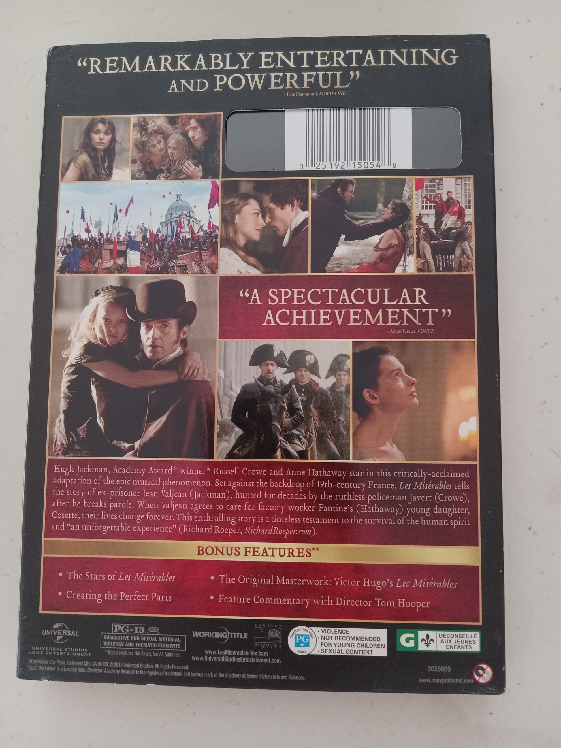 Les Miserables, DVD Movie, Hugh Jackman Widescreen, Rated PG-13, USED