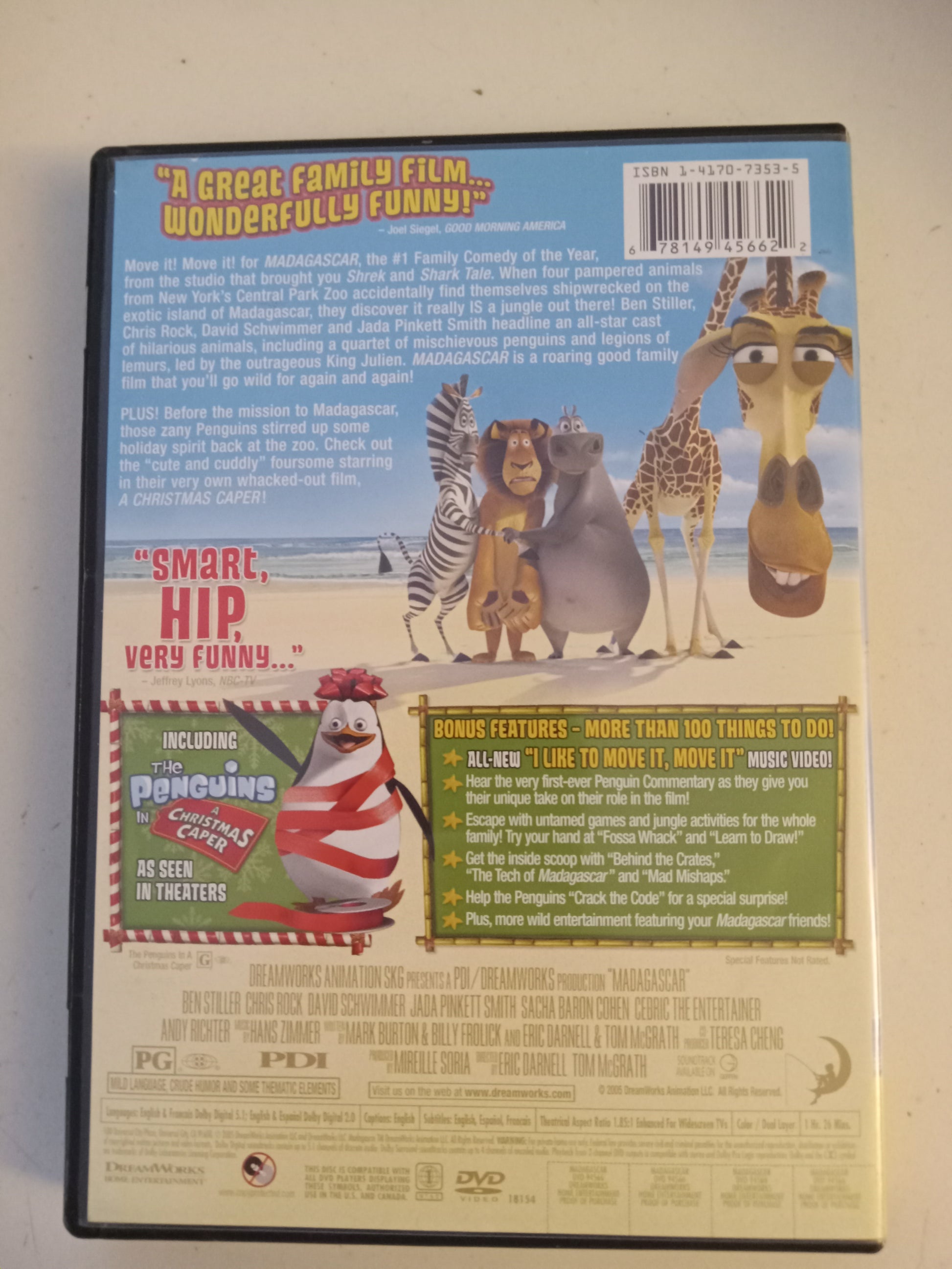 Madagascar, Dreamworks Animated DVD Movie, Ben Stiller Widescreen, Rated PG, USED