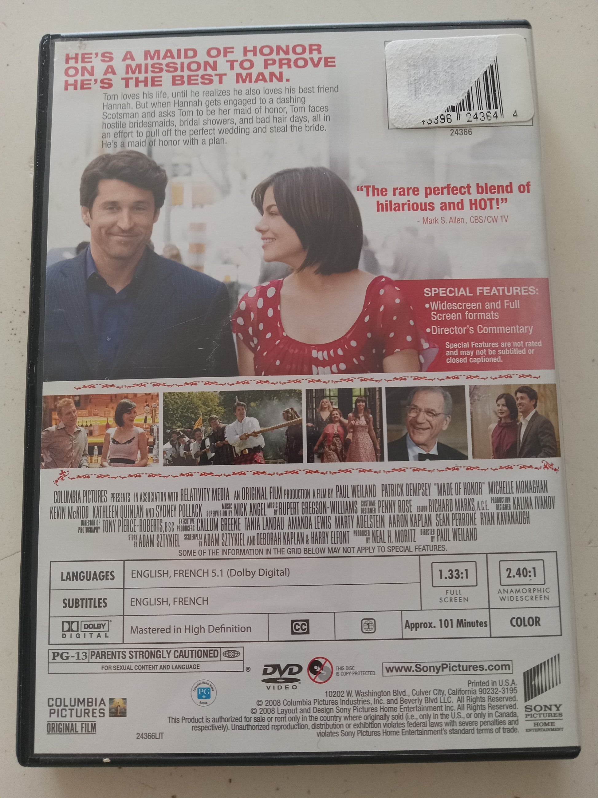 Made Of Honor, DVD Movie, Patrick Dempsey Widescreen & Fullscreen, Rated PG-13, NEW/USED