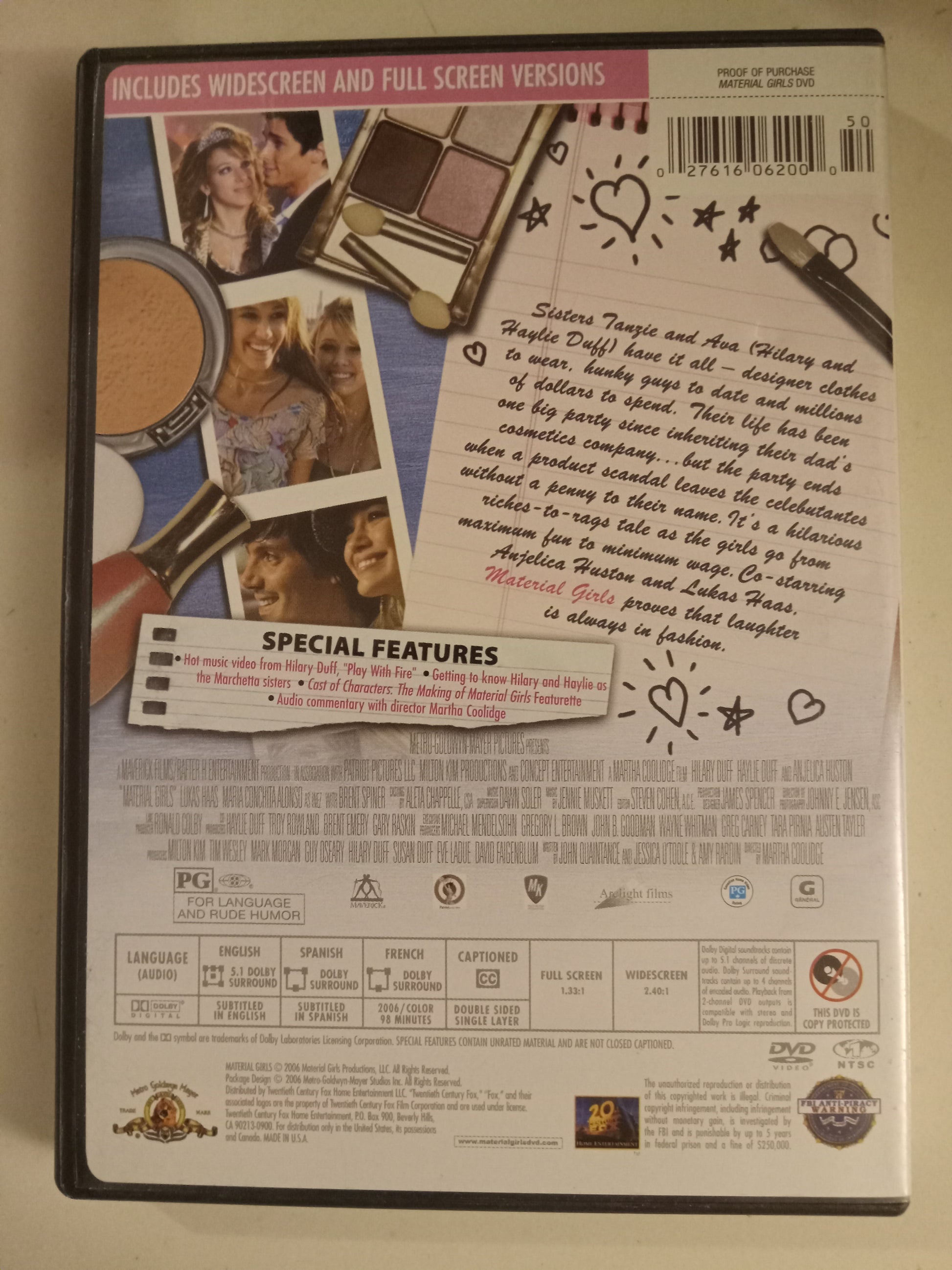 Material Girls, they lost a fortune but they got a life. DVD Movie, Hilary Duff Widescreen, Fullscreen, Rated PG, USED